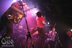 さぁて珈琲をもう一杯飲もうかな。…そう、漂ってくる香りがダイナミックに伝わる。そんなLIVEだった。新田篤が言った「いっちゃいますよ、珈琲でも」。G.のカッティング、甘い声、緩やかに縦揺れ始めた客席。浸透していく挽き立ての音は会場中に広まった。サルサなメロがダンサブルにheatupしていく「朝の風 夜の風」。voが新田誠一郎にchangeした「アイスクリームのような甘く冷たい夜に」rockなのにどこか柔らかい。「一瞬の敵」レゲエ調のミステリアスな空気をぶちかます。路地裏に入った夜道をしこたま追いかけられるようなテンポを繰り広げた。彼の声がそう演出する。nittは兄弟でツインボーカルだ。見事に声は対象的だが二人の声の相性は抜群だ。コーラスも良い。メインを殺さず余すことなく楽しませるのだ。「追いつき追い越せ」ではサンプリングサンからsmileとハサミを持ち矢野がguestで登場。緊張の糸を切って笑いを充満させ去っていったのだ。もうworldは止まらない。横揺れに変わる「つむじ風、ほほをなで」。色気のある声でボサノバ調を唄う兄。アコギに持ち変えた弟のbaby voice「海岸通りで会いましょう」。set listのさじ加減が何ともツボをつく。口中彼等のオンパレードだ。「雨男傘もささずに」で客席も一体、みんなでjumpして終わった。色んなフレーバーが入った珈琲を飲ませてもらった僕はお腹一杯だ。しかし珈琲は病みつきになるのをみなさんはご存知だろうか…。 "春うらら、nitt浮かれてワンマン!" nitt SUPPORT MUSICIANS>ハシノイチロウ(シナトラ)/カワモトコウジ GUEST>矢野仁志(サンプリングサン)