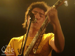 「すあ~べ」とはなんぞや??気になったので調べてみると、ピアノ用語で「柔らかい、温和な」とでてきた。なるほど。と言う事は今夜の宴はどんなことになるやら…期待に胸を膨らませ、いざライブ会場へ!場内にはゆったりとした空気が流れ、まさにすあ~べな宴。ライブが始まってもこの空気は消えることなく、良い意味でとてもゆるい。1組目はリトルキヨシトミニマム!gnk!優しく力強く「楽しむことに意味がある、理由なんて後付でいい」と歌っていたのがとても印象的だった。2組目はYELLOW SOUL SOURCE。ソウルと付くだけあってライブもソウルフル!!ボーカルの声が伸び、ファルセットが聴いていて心地良い。シンプルだけど決してアッサリではない聴き応えのあるライブ。お次は奄美観光大使でもあるハシケンの登場。ずっと「アウェイ」だと言っていたけど全くそんなことはなく、お客さんとの掛け合いもバッチリ。民謡なんてあまり聴く機会はなかったけど、力強く熱のこもった彼の歌は心に響いた。ラストはタカハシヨウヘイ&Pすけ。楽しんでいるのが音で伝わってくる。と言うか、見ていてもわかる。楽しくなかったらあんなグルーブはでないだろう。そして最後には出演者全員でセッション。ステージ上には今日の豪華出演者が勢ぞろいでボ・ガンボスの「夢の中」を演奏・熱唱した。終始心地良い空気が流れていた今夜の宴。たまにはお酒片手にこんな夜も悪くないんじゃないでしょうか?? "すあ~べな宴 vol.2" タカハシヨウヘイ&Pすけ/ハシケン YELLOW SOUL SOURCE/リトルキヨシトミニマム!gnk!
