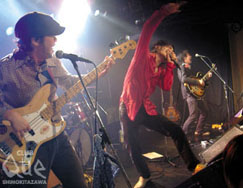 キーワードはdomestic!! 盛り上がるのはパイナップルフリーウェイか否か…フラワーカンパニーズか否か…客か否か…僕か否か…。いや、みんなだ!! 下北だ! ヤカンが沸騰したように熱気と興奮に包まれた、フラワーカンパニーズVSパイナップルフリーウェイ。テンションの煙は高く高く上がる!リズムが浸透する! 唄いまくる! 踊りまくる! 息があがる! 動悸が速まる! そう! domestic! 正に息切れなしでは語れない! そんな熱い青春ROCKが蠢いた。一体、何回「イエイ」って聞いただろうか…。ピンクのeroticなライトでジラして出てきたのはパイナップルフリーウェイ。真っ赤なシャツ! 「ロックンロールハート」でとばしまくる! なのに「水玉ハニー」口ずさみたくなるキュートな歌をここで入れるか! バスドラと手拍子が重なり合えば、みんなノリだす「ロック少年」! フラワーカンパニーズの「MCに休憩をするつもりが…」の意味が今良く解る!LIVEレポを書いてる僕は今も尚HEATUPし続けている。本当「たまらないZE」フラワーカンパニーズ! 発売したばかりのアルバム「脳内百景」から続々と披露された。「年をとるってこと」が流れだした時は涙が出そうになった。感極まるとはこの事なのか? フラカンの圭介もパイフリのシンもステージの天井にぶら下がっていた。靴投げをするブランコのように。確かに平和なアーチが見えた。言葉にはしない「愛」と言うコール&レスポンスを僕らはキャッチした。LIVEが終わってもボールはまだ永遠に飛び交っていた…"RETURN TO NATURAL CLUB Que 夏ノ陣 2006" フラワーカンパニーズ vs パイナップルフリーウェイ