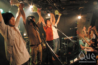 サンプリングサンが解散?いまだに信じられない気持ちでいっぱいだけれど…。この日Queで観たライヴは、最後というには惜しい、素晴らしいものだった。仰げば尊しが会場に流れる…そう、今日の解散ワンマンライヴは「Sampling 卒業ワンマン Party!!」というタイトルなだけに卒業式風に演出がなされているのだ。しんみりしちゃうかな?なんて予想を裏切る楽しい演出に思わずにんまり。在校生からの祝辞としてゆかりの深いアーティストの方々からのメッセージが読まれたり、卒業証書授与として、卒業証書を読み上げてメンバーが登場するという、なんとも愉快な解散ライヴ、いや卒業ライヴの幕開け!矢野さんが「いつも通り最高のライヴをしますよ!」と言うと、「マリアンナ」から始まり、会場を一気にマジカルなポップの渦に巻き込んでいった。感極まるような瞬間もあったけれど、やっぱり今日もずっと笑顔でいれるライヴだった。懐かしい曲も盛り沢山なセットリスト。中でも印象的だったのは、デモテープにしか入っていないという封印していた曲、「カエル二世」。田鹿さんがハンドマイク!そして最前のお客さんと次々に握手!こんな田鹿さんを見るのは最初で最後なのでは。「騒音天国」「Love & Rhythm」とガンガンに盛り上げて本編は終了。アンコールのラストはやっぱり「ヒューリ」。個人的な話だけれど、高校生の時に「ヒューリ」を聴いてサンサンを好きになった、その頃の記憶が蘇ってきた。田鹿さんも言っていたけれど、「みんなサンサンと一緒に大人になった」のだと思う。この日Queにいたどの人もそれぞれひとりひとり違った思い入れがあって、サンプリングサンというバンドが、10年程の歴史の間にわたしたちに教えてくれたもの、みせてくれた世界は大きかったと思う。客席みんなが手をあげて、飛び跳ねたこの一瞬の情景を私はしっかり目に焼きつけようと思った。もうこの4人のライヴが見れるのは最後なのか、と思うととても残念だけれど…。今日はあくまで卒業で、これからがスタートだから、期待してます!たくさんたくさんありがとう、サンプリングサン!! "RETURN TO NATURAL CLUB Que 夏ノ陣 2006" "Sampling 卒業ワンマン Party!!" サンプリングサン
