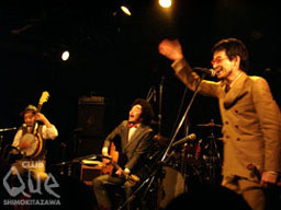 一番手は『ハッチェル特急楽団』!これぞエンターテイメント!チャーミングなスマイルの3人がバンジョーとアコースティックギターで演奏するのはオリジナル曲の他にジャズやクラシックや名曲の数々。そんなナンバーに替え歌の要素を織り交ぜ、会場は笑いの渦に包まれていました。コミカルでユーモア溢れる空気がとっても素敵!ステージを去った後も、彼らの合い言葉「ハイ、どーも!」の虜にすっかりなっていました。きっと皆さんも!次は、プロペラ羽原裕太郎とフラワーカンパニーズ鈴木圭介による弾き語り『ザ・スンタラーズ』!!名前の由来は"2人とも身長が小さい=寸が足りない"から付けたそうで、羽原セレクトの衣装もド派手っ!さすがの鈴木氏も驚きを隠せなかった程です(笑)演奏は、お互いの持ち曲を交互に演奏し、合間にはMCを・・・いや!逆?ってくらいに2人による言葉のセッションは見事!でした。でも最初と最後は「ザ・スンタラーズ」のテーマで、しっかり締めくくる辺り"流石です!"お待たせしました!という感じでトリを飾ったのは『原始ROCK』!!!坊主姿のGu&Vo.井垣(Unlimited Broadcast)に合わせて、このタイミングで坊主にしたのはBa.グレート前川(フラワーカンパニーズ)。名前通り原始的要素が全開!近年稀に見る迫力満点のバンドとなっての登場です。MCでは「子供がこりゃ泣くよ~」なんて事を言ったりも(笑)見た目もさる事ながら、演奏での迫力はそれ以上!ステージの枠を飛び出し、臨場感たっぷりなライブで会場のボルテージを上げていました!そしてアンコールでは、ザ・スンタラーズとともに「スタンドバイミー」を熱唱し、最後の最後まで己の全てを届けようとする姿がとても印象的でした。そんな本日、発電所(3バンド)から放たれたエネルギーを存分に充電して帰った事は言うまでもありません。"東京第1発電所!" 原始ROCK[井垣宏章(vo.g/ex.Unlimited Broadcast)/グレート前川(b/フラワーカンパニーズ)/堀之内傭平(dr/プロペラ)] ザ・スンタラーズ[羽原裕太郎(プロペラ)&鈴木圭介(フラワーカンパニーズ)] ハッチェル特急楽団