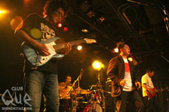 20年の時を経て有頂天がキャプテン・レコードに残した唯一のアルバム『Because』がCDでリリースされた本日。CLUB Queへ一歩足を踏み入れると、DJ出演のS/G/Y/M氏による80年代ニューウェーブが響き渡り、廻るミラーボール。そして開演を待ち望む多くの観客が詰め掛けた会場内。熱気が充満する中、MOTOCOMPOが登場。Chiho氏のスウィートな歌声と怒濤のポップチューン!テクノポップサウンドと映像の融合。絶妙のコラボレーションは見事。『The Very Best Covers Of 有頂天』でのカヴァー参加曲「オードリー・ヘプバーン泥棒」も披露され、輝くセンチメンタルな瞬間が描かれた。とても心地良い音空間に包まれるフロアにカラオケバージョン「大失敗’ 85」に乗せ、遂にメンバーが登場!KERA氏、三浦氏、そしてクボブリュ氏。フロアからは熱い歓声が沸き上がった。元有頂天メンバー3人が9年振りに揃ってステージに立つという、衝撃の瞬間が目に飛び込む。更に今夜は「ノー・シンセサイザーズ」という、キーボード無しでの編成に元ZEPPET STOREドラマーYANA氏を迎えての出演。 KERA氏がギターロック的サウンドに乗せ唄う、何ともサプライズ的なステージだ。終盤には人気テレビ番組『銭形金太郎』主題歌としてもお馴染み「心の旅」を。本編ラスト「愛のまるやけ」まで全11曲。ここで本編は幕を閉じるが、興奮冷めやらぬ観客の熱烈アンコール。それに応えるべく再びメンバーが姿を現す。ここでマイクが一本追加され、有頂天メンバーであったギタリスト、コウ氏がゲスト出演を遂げた。三浦氏はキーボードにまわり、ダブルアンコールでは「もう曲がなくなってしまった」と語るKERA氏。最後は、シンセバージョン「心の旅」で夢のような感動のフィナーレを飾った。ノー・シンセサイザーズ[KERA(vo)/三浦俊一(g)/クボ・ブリュ(b/ex. 有頂天)/YANA(dr/ex.ZEPPET STORE/TOBYAS)] MOTOCOMPO DJ>S/G/Y/M(HACIENDA WITH LOVE)