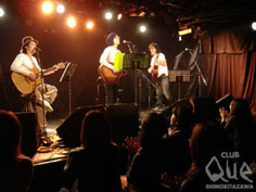 スタート12:30(昼)、会場入りにいたっては10:00という健康志向ド真ん中のこのイベント。サザンハリケーンを解散してから毎日朝の8時に寝る、という自堕落な生活を送っていたウメザワにとっては格好のリハビリとなったようだ。根っからの晴れ男東京60WATTS大川たけしと、3ヶ月連続のうちすでに2回が雨という実績をもつウメザワのお天気対決の行方が注目されたが、あっさり雨。コンプリート。1番手は30size山口進。本番直前に入ったファーストキッチンで、大川氏による心理テストの結果「マゾ」と判定され(ちなみにウメザワもマゾ)、動揺していたが、ステージではキッチリ歌心を轟かせていた。正直者がバカを見る?うるせーよ。オレは山口進のバカみたいに真っ直ぐな歌声が大好きなんだ!、と叫びたい。2番手、大川たけし。歌手と呼ばれる多くの人々が、やれ発声だ、やれ音程だと苦心してる中で、彼は歌に対して全くかしこまらない。話すように歌う。歌うように話す。「目白通りいつも通り」も、「おはようございます」も、飲み屋のエロ話も、同じだ。人間が好きだから、そのリズムを、その瞬間に、スッと、掴まえてみせるのだ。3番手、G・ウメザワ。その官能的なたたずまいはまさに「バラの貴公子」、「100万ドルの微笑み」だ。ステージ上で突如ジャンクマン(from キン肉マン)の話を始めて空気を微妙に凍りつかせた山口進の意志を継ぐかのごとく、再びジャンクマンの話を蒸し返した勇気。まさにG(=Gentle)・ウメザワの名にふさわしい。空気なんか頼まれても読まねえよ。最後に3人で「ルージュの伝言」セッション。ハッキリ言ってオリジナルを超えていた。音階もリズムも言葉も全て超越した小宇宙(コスモ)がそこにはあった。確かに。"G・ウメザワ 3ヶ月連続アコースティック企画 ~早起きは三聞の徳~" G・ウメザワ/大川たけし(東京60WATTS)/山口進(30size)