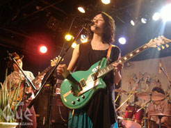トレモロイドの初自主企画イベントとなる、「空想の街」。会場に入るとステージ上に飾られた大きな街の絵が目に入り、客席の後ろの壁には写真も飾られている。こういうあったかさが企画イベントのいいところ。一番手で登場したのはトキメキ泥棒。一度見たことがある人ならご存知だとは思うのだが、唯一無二の不思議なバンド。ボーカル芋子さんのトークから始まるライヴスタイル、このクスッと笑っちゃう話をきいているだけで、まさにトキメキを泥棒されちゃった!という感じ。サウンドは、ゆるーくシンプルでいて、確実に核心をついてくる感じが気持ちいい。次は、ゲントウキ。この日はパーカッションとグロッケン&keyを交えてのアコースティックセット。ニューアルバム発売間近ということで、アルバムの曲を中心に。「abeno-music abeno-life」では曲にまつわるエピソードもMCで聞けたり、みんなで合唱したり…なんだかおうちに遊びに行って音楽をきいているような、あったかい演奏だった。さて、最後はお待ちかね、この日の主役トレモロイド。 初企画ということで、緊張からか固かった5人。曲が進むにつれ、次第にほぐれていって、心地よい浮遊感とキラキラした世界をいつものように聴かせてくれた。いや、いつも以上!やはりメンバーの意気込みが伝わってきたし、長めの演奏時間だったこともあり、迫力のあるライヴだった。トレモロイドのライヴは何度か観ているけれど、めきめきと成長していっているのがわかる。新曲「青色の雲」はこれからのトレモロイドが楽しみになるようなそんな曲。トレモロイド、今まさに目が離せないですよ!トレモロイドをはじめ他の二組も、在り来たりではなく一癖のある歌モノがそろったイベントだった。「空想の街」、vol.2もQueにて5月に開催予定。楽しみ!"空想の街 vol.1" トレモロイド/トキメキ泥棒/ゲントウキ(アコースティックセット)