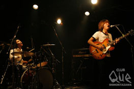 二人でいい。いや、この二人だけがいい。リトルキヨシトミニマム!gnk!はG.VoのキヨシとDr.Choの!gnk! (ゲンキ)のベースレスの二人編成なんだけど、三人や四人では決して出せないこの二人だからこそ出せる独特の世界観が彼らにはあった。この日は先月に1stアルバム「ウワサ」を発売したばかりのリトルキヨシトミニマム!gnk!のCLUB Queでの初ワンマン。観客で埋め尽くされたフロアーの灯りがしだいに薄暗くなると、すぐに期待の声がステージへと向けられた。しばらくしてステージ上の微かな光の中に静かにキヨシは登場し、ゆっくりとうねるようにギターを鳴らす。少し時間を置いて!gnk!が登場してカウントを始めドラムを叩く。そして突如ステージ上は眩しいくらいの光に包まれついに開演した。1曲目からこんなにも胸を熱くさせる人たちは他にいるのだろうか。キヨシの柔らかく少し擦れた温かみのある声と!gnk!の力強く心揺さぶる一音一音が、人と人の間にある垣根をぶっ壊して一気に会場を一体とした。どこか懐かしく親しみやすい彼らのサウンドはとても人間くさく、観客の一人一人へと一曲一曲が染み込んでいくのが観客の表情から読み取れた。ライブ終了後にはその染みこんだものがそれぞれの観客の中に残り、それがまた次回に彼らと会えるのを楽しみにしてしまうものとなっていた。熱いライブを本当にありがとう。"リトルキヨシトミニマム!gnk! ONE-MAN SHOW!~「ウワサ」Release Party!~" リトルキヨシトミニマム!gnk!