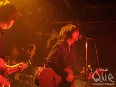 イヴェントタイトルが『近藤智洋/沖野俊太郎』とヴォーカリストの名前そのものずばりというのも珍しい。それだけの強い歌を持つふたりの対決ということだ。といっても、本人達には対決ムードなどさらさらなく、ひたすらマイペースに自分の世界を表現していくだけ。どんな場所でもどんな形でもそれができるアーティストなのだ。2005年にQueで復活させたVENUS PETERを昨年再び冬眠させ、今度はOCEANとしてこの場所に戻ってきた沖野俊太郎。相変わらずの存在感と浮世離れしたような雰囲気に初っぱなから圧倒されてしまう。シンセの音が壮大さを創りあげるサウンドと、深海の中で響いているような声はまるで魔術。気がつけば、その音に魅せられて、操られるように体を揺らしていた。左手にコードを持ってうたうスタイルも健在で、バンドが変わっても沖野ワールドは変わらずそこにあることを強く印象づけたOCEAN初ライヴだった。沖野俊太郎の歌が海の青だとするなら、近藤智洋は太陽のオレンジだ。暖かさの象徴でもあり、時には燃える熱さを表す。ポップでゆるいメロディのピアノセットから身を切るようなせつなさのアコギセットへの転換は圧巻だった。一気にステージの温度が変わる。魂を振り絞るような"Barefoot Diaries"、"恋に落ちたままで"はこれぞ近藤智洋! というテンション。やはり、バンドで観るなら常にこれくらいの熱が欲しいと思うのは欲張りだろうか。ライヴが進むに連れ、どんどん激しさを増していった近藤智洋バンド。最後はこれからくる夏の温度を予感させて、ステージを締めくくった。自分のカラーをそれぞれの形ではっきりと示したふたりのヴォーカリスト。進化はするけれど、根底にある本質は変わらない。そういう強い芯を彼らは持っている。"近藤智洋/沖野俊太郎" 近藤智洋バンド [近藤智洋(vo/a.g/pf/ex.PEALOUT)/城戸紘志(dr/JUDE)/工藤佳子(b/*Hvanella)/ピロ(perc)/山田貴己(e.g)] OCEAN [沖野俊太郎(vo/VENUS PETER)/石田真人(g/VENUS PETER)/恒吉隆治(g/COLOR FILTER)/山賀周(b)/佐治宣英(dr)/クジヒロコ(key)]