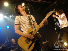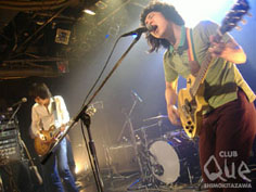 かまボイラー、おとぎ話、そしてメガネビジョンが登場する非常に濃い~濃い~血沸き肉踊る的なイベント「酒と泪と男とメガネ」は、宇都宮を拠点に活動するこのメガネビジョンが発表したこの1st Mini ALBUM『手紙』レコ発イベントである。自主企画ということもありメンバー全員の気合が入ったイベントだから、生ぬるい空気ではいかんとのことで集められた2バンドは、これまたクセが一癖も二癖もあり、しかし直球にロックンロールを鳴らす人たちなのであった。まずはメガネビジョンギターの根本氏による開会宣言。会場から温かい拍手と声援でスタート。トップバッターはかまボイラー。しゃがれた声のシャウトがたまらなく文句なしに格好良い!地の底から鳴らすような音と声が共鳴しあい、彼らの歌は聴くたびに熟成されていくかのようなロックンロール。その密度の濃い空間は、このレコ発に花を添える如く、良い塩梅にステージを温めていく。二番手は「おとぎ話」。名前の通りの「おとぎ」っぷりで、温まった会場をゆる~く自分たちの温度へ戻していく。一度観たら忘れられない、いや忘れることは容易くできるのだが続きを観ていたい。その気持ちに、小さい頃に多くの「お伽話」を聞いて見て興奮したことを思い出す。彼らの音楽はまさにその「おとぎ話」なのであり、まるで何か魔法を掛けられたかのような感覚を手放すことは出来ない。思春期真っ只中ロックンロールここにあり。そしてトリを飾るのは、もちろんメガネビジョン。シンプルな曲のなかに凛とした強さ、男の子の弱さ、ほどよくミックスされて、想像できない程の爆音は心地よく胸に突き刺さる。非常にストレートな音楽のわりには、もぞもぞと少し人見知りの部分を残しているように感じる姿勢が聴く人の耳をくすぐるのだろう。「歌いたいことがあるから、僕はここにいる」とはメガネビジョン「手紙」の歌詞。“不器用ゆえに伝わるロック”、この3バンドを通してヒシヒシと肌で感じた夜だった。"酒と泪と男とメガネ" メガネビジョン/かまボイラー/おとぎ話