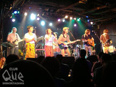 小笠原諸島は東京の南約1,000㎞の太平洋上に位置する30余りの島々である。19世紀にはイギリスの、江戸時代には幕府の領有下になり、戦後は米軍施政下に置かれるなど、非常に目まぐるしい変遷の歴史を持つ。再び日本の領土となってから40年近くたった今では、小笠原村民と来島者との交流も盛んになり、そこから新たな島の発展を目指そうという試みが行われている。そしてこの美しい島に魅せられた男のショウが幕を開けた。この日はイスとテーブルが並べられ、ステージ上には南国の植物が飾られるなどして、すっかりリゾート・ムード。加えてSEが波の音とくれば、もはやここは下北沢ではない。「石田ー!」と男性客の声がフロアから聞こえ、いよいよ主役・石田長生の登場だ。アコースティック・ギターで1曲披露し、その後に清水(b)と宮川(dr)を迎え、ジャジー・チューン「アフリカの月」などを演奏した。更に本人いわく「ニュー・スタイル」と なる編成で、ステージ上が一段と賑やかになる。宮武(vo)・宮田(perc)・ゴンダ(g)らを加え、アルバム収録曲を次々と展開。レコーディングに参加したバイオリン・ヴィオラ・チェロからなるストリングス・カルテットや、フラダンスの女性が登場し、アルバムのタイトルにもなっている「Boninの島」を演奏する場面は、石田も思わず「感動してしまった」と漏らすほど素敵な空間に仕上がっていた。ラストとなる2度目のアンコール(サービス満点!)では、アルバム最後に収録されている「誰のためでもない舟」を演奏し、すっかり小笠原色に染まった会場を後にした。会場入りから最後まで下北のライブ・ハウスだという感覚が持てず、南国のミュージック・バーにいるような錯覚に陥っていた夜。無性に一人旅に出たくなった。"石田長生/小笠原諸島テーマアルバム『Boninの島』発売記念ライブ" 石田長生(vo.g)/清水興(b)/宮川剛(dr.perc) GUEST>宮武希(vo)/宮田まこと(perc.g)/ゴンダタケシ(g)