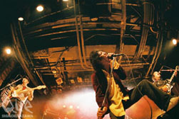 まずは、ローザ・パークスが登場。「今日いる女の子達に送ります。」と軟派なセリフもさらっと言い放ち、フロアをぐるっと見渡す。1人1人の目を見て歌い掛ける様な距離の近い空気を作って行く。続くは「し~もきた、夏の陣!ロックンロール!!」ご恒例のコールアンドレスポンスでフロアを持ち上げ、Dr.サトシのドラムソロも披露、挨拶は「ばかやろ~」なパイナップルフリーウェイ。熱さも男くささもたっぷりなのに、それと一緒に優しさを感じてしまう2組。お互いハンドマイクだからどんどん、ぐんぐんと前に寄ってくる。それが嬉しく胸が躍る。アンコールでは、フロアで楽しんでいたローザ・Vo.せいじにもマイクを向け一緒に歌う穏やかな場面もあり。台風停滞中の3連休の中日となったこの日、偶然にも二組共が一足早い夏を感じさせてくれる楽曲を披露してくれた。ローザ・パークスが太陽が高い位置にあるはしゃぐ海を見せてくれたとしたらパイフリが見せてくれたのは夕暮れの少し切ない海。まったく見せる景色は違うけど、それがそれぞれを象徴していてお互いの心意気と共にキチンとこの夜が繋がった様な気持ちになった。"CLUB Que 夏ノ陣 2007 RETURN TO NATURAL" パイナップルフリーウェイ VS ローザ・パークス