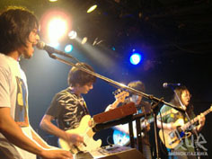 今話題のバンドが集まった今夜。開演前の開場を見渡すと、なんだかお客さんの年齢層が若め。それもそのはず、今日の出演者の平均年齢は 21.8歳だそう!若い!そんなフレッシュなイベントの幕を開いたのはsun。伸びやかな歌声と叙情的な楽曲が印象的だった。1985年生まれの出演者が多い今日にぴったりな「1985」という曲も披露。 そして二番手は竹内電気。ちょっとオシャレなアレンジにのせるメロディは極めてポップ。そして若いのに確かな演奏力。なのにどこか変態な感じがするのはキャラクターのせいかな。実に濃いMCでも会場をわかせてくれ、一気に会場が華やいだ。そしてTHE NOVEMBERS。キリキリとした演奏に独自の世界観でぎゅーっと胸が苦しくなってしまう、そんなちょっと危うい部分が見え隠れするようなバンド。なんだかドキドキして、つい目が離せなくなってしまった。そしてトリは、今話題沸騰中のUNISON SQUARE GARDEN。「クローバー」 から勢いよく演奏がスタート。ひたすら前進していくようなイメージのステージが見ていて気持ちいい。甘めの歌声にキュンとして入りやすいながらも、奥に強いものを感じる。「時を染めゆく音」という本日のイベントタイトルにちなんで「みんなで一緒に、時、染めよう!」とひたすら言っていた彼等だけれど、実際会場はユニゾン色に染まっていたと思う。それくらい会場が一体となり、本日のイベントは幕を閉じ た。これからが楽しみなフレッシュなバンドのエネルギーをたくさん吸収できた。青田買いするなら、本日の出演者達は要チェックでしょう!"時を染めゆく音 color.12" 竹内電気/UNISON SQUARE GARDEN/THE NOVEMBERS/sun