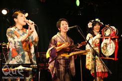 トップバッターは浴衣を現代風に着こなした粋な4人組「原みどり東京チャンチキズ」。「お座敷小唄」と称していたけど、明治~昭和30年代くらいの日本歌謡曲を歌い、老人ホームの慰問などをやっているそうだ。し・か・し!日本歌謡と侮るなかれ!ロックでもポップスでもムード歌謡でもない、とてもモダンな曲ばかり。例えば「月がとっても青かった」だけでウキウキ・ソングができたり、ある事件を歌にしたり、といった具合だ。会場も手拍子で応え、「面白かった!」と拍手の嵐。喜怒哀楽の「怒」がない感じで、日本歌謡の歴史を表現した「チャンチキ」というジャンルが生まれそうだ。お次はソウル・フラワー・ユニオンファンにはお馴染みの河村氏率いるバンド。ロックな要素はありつつ、とてもファンタジック!映像的というか、画が見えるんですよ、画が!歌詞も「ラララ」だけだったりするし、“音”で“楽しんで”“楽しませている”。1バンド目とは別の楽しみ方ができた。 さて、皆さんはその昔「シェイディー・ドールズ」という、とてもエキサイティングなバンドがいたのをご存じだろうか?その中心人物である塚本氏率いるNOWHEREが今日のトリ。音と歌詞がグサグサと心に刺さってくると思いきや、アコギでしっとりと聴かせるなど全体のストーリー作りはサスガ!見事なステージで魅了してくれた。 そしてアンコールにはサプライズが!塚本氏が「最後にステージ全部のせするから」と予告した通り、各バンドからの刺客がズラリと登場。この日、この瞬間でしか見られない構成で、ボ・ガンボス「トンネル抜けて」、ソウル・フラワー・ユニオン「満月の夕」という、名曲中の名曲を披露。こんな贅沢な夜があっていーんでしょうかっ!Queだからこそ実現できるこのセッション。最初から最後まで、ドキドキ、ワクワクさせられた最高の夜でした。"free angel vol.1" NOWHERE[塚本晃(vo.g)/三輪雅也(b.vo)/伊藤孝喜(ds.vo)] 原みどり東京チャンチキズ [イシヲロシア(uklele.etc)/ 飯野竜彦(guest key/フライングキッズ)/ こぐれみわぞう(guest チンドン太鼓/シカラムータ)] 河村博司バンド [河村博司(vo.g/ソウル・フラワー・ユニオン)/ハシケン(b.cho)/多田三洋(key.cho/THE COLTS)/伊藤大地(d.cho/SAKEROCK)]