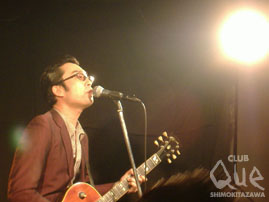 CLUB Queの13th Anniversaryにおけるワンマン・シリーズ第5弾。何だろう。始まる前のこの胸騒ぎ。続々と集まるお客さんから目には見えないエネルギーを感じ取ったからなのか、噴火活動停止中の活火山の側にいるようなソワソワ感。そんな時に彼らが現れ、さらに火山地下のマグマが上昇したような状態となった。ロックンロール・ブルース・ツイストなどの要素が溶け合う洋楽サウンドに泥臭い日本詞が乗っかって、完全なる彼らの空間が出来上がる。ヨーホー(Ba)がやや涼しげな表情でウッド・ベースのような重厚な音を奏でている最中、ミウラ(Vocal&Guitar)は汗だくになってギターを掻き鳴らし、随時黄色いタオルで汗を拭う。「チケットの予約はバンド経由だと面倒なのでQueで予約して。」だとか「時間があったらアンコールするけど。」なんてハチャメチャな発言は、ミウラだからOKなんだろうな。とにかくこの日のお客さんのノリはやたらとハイ・テンションで、終始噴火状態だった。曲中だろうがMC中だろうが、あらゆる場所から雄叫びが聞こえていたし、お酒を片手に身体をダンサブルに揺るがすお客さんが多くて、フロアの動行もショウの一部に見えたのがたまらなく素敵であった。「ビール」「ウィスキー」などが登場するアルコール系の曲が多いからなのか、お酒を口にせずともすっかり酔いどれ気分。お酒とブルースってのはどこか切ない。それでいて抜群に楽しいから不思議だ。"CLUB Que 13th Anniversary ~club Queen and king 13th joker~" 夜のストレンジャーズ DJ>ネモト・ド・ショボーレ(DECKREC)