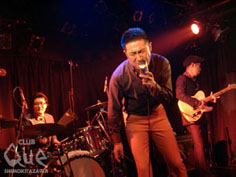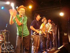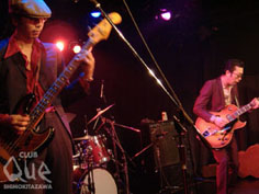 10月31日、11月1日と2日連続で行われる”ディスカバリージャパン 原点カイキ大作戦”。このイヴェントはもともと24/7の倉山直樹と怒髪天・増子直純、そしてQueの店長が始め、今回めでたく本家Queで復活となったもの。主催者のよろこびもひとしおだっただろう。一番に出てきたのは、意外にも怒髪天。そして、1曲目はこれまた意外にも『銀河伝説WEED』! ファンを二重にびっくりさせたけど、その後はすぐにいつもの怒髪天のペースに。新曲『ドンマイ・ビート』でサタデー・ナイト・フィーバーばりに人さし指を突き上げ、『人間バンザイ』では、お客さんの両手を挙げさせる。曲とMCとパフォーマンスと表情と。すべてが怒髪天だった。続く夜のストレンジャーズは、怒髪天とは対照的にMCほとんどナシで走っていく。その感じが、渋みがあってカッコいい。3ピースの特徴をいかして、ストレートなロックン・ロールをシンプルに表現しているのが気持ちよかった。今日はいろいろなタイプのバンドが出る日だ。ダークなスーツの4人が揃う中、オレンジのジャケットとぴっちりパンツでステージに飛びだしてきた人がいた。The Fave Ravesのヴォーカル、あおちゃんだ。落ち着いた演奏をバックに熱唱する姿は、とにかくソウルフル。全曲、英語ということもあって、どこか海外の雰囲気のいいクラブで、お酒でも飲みながら聴いている気になる。そんな気分とThe Fave Ravesの音に酔いがまわったか、こきざみにステップを踏みながら歌うあおちゃんに合わせて、気づけば会場中が踊っていた。最後は倉山直樹率いる24/7。「踊ろうぜ?!」っていわれなくてもすでに踊っている状態でライヴスタート。2デイズの初日だからって、当然、手は抜かない。歌あり、インストあり、スローナンバーあり、レゲエ調あり。スカのリズムにあわせて、体全体で音楽を表現する。アンコールでは、メンバーがフロアに下りてきたりして、どこまでもフリースタイル! これは、翌日もどうなるのか予測ができない。明日も、そして次のディスカバリージャパンも、続きが全部観たくなる! "ディスカバリージャパン 原点カイキ大作戦" 24/7(twenty four seven)/怒髪天/夜のストレンジャーズ/The Fave Raves DJ>ISHIKAWA(TIGER HOLE)/TARSHI(LONESOME DOVE WOODROWS)