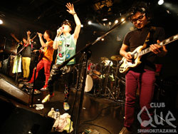 息がぴったりなダンスで登場したストライカーズ。歓声と手拍子に迎えられテンションは既にMAX。リリースしたてのダンスチューン『今夜はトゥルットゥ』南風漂う『タヒチクール』から始まり、色とりどりのタオルが宙を舞う『gift』にキングオブポップの名曲カバーでメンバー紹介も飛び出す。スタンダードロックや軽やかなパンクサウンドなどアンコールまでの全20曲。「音楽はエクササイズだ」とVo.星野が言うように、一瞬の隙も無く続くストライカーズ流エンターテイメントロックがCLUB Que丸ごと笑顔で踊らせた。