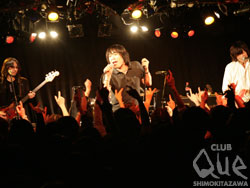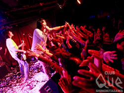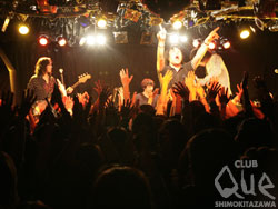 今年もやってきました『ファンタスティッQue! ~2010』の初日です!チケットはSOLDOUTで、会場はモッシュやダイブが起きてしまうのではないか?と思うくらい超満員。ひしめき合うフロアの中、ライブは『NEVER MIND』で軽快にスタート。『気狂いアップル』、『Sha-la-la-la-lee』と一曲一曲終わる度に増す声援、今日もステージと会場のテンションは絶好調!愉快なMCも舌好調で「2009年の武道館でのスーパースターのままでいたかったけれど、今Queにいる自分が本当の自分?」、酸欠対策として酸素が36倍入っているお水を買った加藤さんが飲んで一言「過呼吸」、勝負パンツ&ライブパンツの話、メンバーを日本の歴代首相に例えるなど(そしてその話から『たよれる男』へという最高の流れ)、ユルい話からぶっ飛んだ話まで話題は尽きることが無い。セットリストはしっとりと美しい『ウィンターローズ』やロックンロールな男ナンバー『青春ノークレーム ノーリターン』、会場大揺れのダンスチューン『がんばれG.I.Joe!