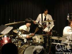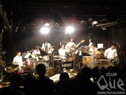 日本武道館にドラムが9台が一堂に介し、一斉に演奏するイベントがあったとしよう。「え?ドラムが9台も?」と思うのが普通の感覚だ。だがそんなイベントが存在した。おまけに会場は日本武道館でもさいたまスーパーアリーナでもない。CLUB Queだ。おまけに"Que"だから"9台"なのだそうだ。思わず笑ってしまった。ステージ上には5台のドラム、ステージ外にも4台のドラム。丁度ヴォーカルが立つであろう、ステージの前方センターを取り囲み、円陣を組むようにして、9台のドラムがひしめき合っている。ギター、ベース、キーボードはステージ後方だ。何もかもが初めて見る光景で、思わずニヤニヤしてしまう。ライヴは2部構成。前半はドラム講座を踏まえながらのインスト中心のライヴ。about tessの楽曲『Violence Freak』から幕を開ける。個性的な9人のドラマーの動きと音と心、全てがピッタリ合っている。これぞ究極の美ではなかろうかと思うくらい心酔した。その後は1曲1曲、曲の仕組みについて丁寧に解説と実演をしながらオリジナル曲を披露していく。これぞリズムの魔力であろうか、どんどん催眠状態に誘われるかのように曲に入り込んでいく自分がいた。9人のドラマー達は様々な色を叩き出していく。MARCOの宗ひろしを迎えた『地球人』は、地底の奥の奥から湧き上がる生命力を全身で感じられる壮大な音像を帯びていた。MCを挟み後半は「誰もが知っている曲」のカバーをゲストボーカルと共に披露。岩瀬敬吾はビートルズやボン・ジョヴィを、Swinging Popsicleの藤島美音子はマイケル・ジャクソンなどを熱唱。ふたりとも衣装にカバーするアーティストを意識したり、藤島はムーンウォークを披露したりと遊び心も欠かさない。フロアとステージで自然とコール&レスポンスが起こり、笑顔も絶えなかった。ラストはザ・カスタネッツの牧野 元を迎えてのTHE BOOMのカバー『風になりたい』。入場前配られたパーカッションを手に、フロアとステージが一丸となっての大セッションだ。そして、9人のドラマーをまとめた溝渕ケンイチロウが最後に見せた男泣きに、胸が熱くなった。ドラムの威力と、ミュージシャン達の固い絆に魅せられた一夜であった。"DQS presents 「Que人のドラム侍」 vol.1」" DQS(ドラムクイックサービス) [Dr1:溝渕ケンイチロウ(ザ・カスタネッツ,Qube), Dr2:山口幸彦(ハックルベリーフィン),Dr3:立井幹也(lala sputnik), Dr4:高橋浩司(HARISS,ex.PEALOUT),Dr5:丸尾和正(Clingon), Dr6:みん(MALCO),Dr7:ヤマザキタケシ(メレンゲ), Dr8:小関哲郎(about tess),Dr:9大坪徹志(hare-brained unity), Guitar:藤田顕(PLECTRUM),Bass:平田博信(Swinging Popsicle), Key:堀越和子(GOMES THE HITMAN)] GUEST VOCAL> 岩瀬敬吾/藤島美音子(Swinging Popsicle)/ 宗ひろし(MALCO)/牧野 元(ザ・カスタネッツ) >2/8、「Que人のドラム侍」動画ダイジェスト版はこちら<