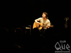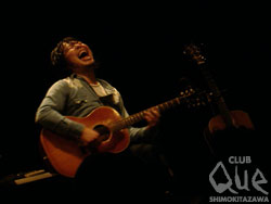 各日120名限定で行われた「曽我部恵一 2Days アコースティックライブ "LOVE & LIFE"」。1日目は"LOVE"、2日目は"LIFE"をテーマに、それにそって自身の曲を演奏し自分の歌を辿ってみたいと発言されていた通り随所にこだわりが感じられるスペシャルな2daysとなった。ぐるりと見渡したと客席には椅子が設置され、ステージにはギターと椅子と机のみが置かれている。場内の音楽はポータブルレコードプレイヤーで静かに流され、いつものQueなのに何か違和感を覚える。なんだろうこの何かを置いてきたような感じ…と考えてると、開演して曽我部さんから今日のライブはマイクなしでギターはアンプに繋がれていないということが告げられる。遅ればせながらそこでステージにマイクがないことに気がついた。スピーカーからは一切音が出ていないせいか、普段は気にならないような小さな音もクリアに聞こえてくる。時間が止まったライブハウスのようにも感じ、なんとも不思議な感覚である。一曲目は『ふたり』。本当に生の歌声とギターのみでライブがスタートした。サニーデイ・サービスの、ソロの、ソカバンの、曽我部さんの曲が時にしっとりと時に激しく次々と演奏される。恋人をやさしく見つめる目線だったり恋に落ちる瞬間だったり、"LOVE"がテーマの曲をうたう歌声に包まれながら、観客は思い思いの人を浮かべていたのだろうか。『東京』と『スロウライダー』では観客のコーラスが自然と発生し、この空間を壊さないようにとささやくような歌声がキュートで愛に溢れていた。新曲『ふたつのハート』も披露され、アンコールは二回あり『LOVE SONG』と『コーヒーと恋愛』が演奏された。毎日の小さな奇跡を思い出させてくれる甘い声に酔いしれた夜だった。二日目の"LIFE"も引き続きアンプラグドライブ。「LOVE とLIFEに曲を分けてやりたかったけど、結局LOVEの延長にLIFEがあるからあまり変化がなくなった」とMCでおっしゃられていたけれど、『女たち』や『チワワちゃん』、『東京2006冬』など曽我部さんの生活が垣間見られるような曲が多く、家族を愛しそうに歌う姿に心が温かくなる。そしてこの日のテーマ曲でもあるような新曲『そしてぼくはうたをうたう』も披露される。東京の下北沢という街で生活をし歌をうたって生きる、曽我部さんの"LIFE"そして"LIVE"を肌で感じた夜だった。ありそうでなかなかないアンプラグドの夜。必要最低限の環境で行われた弾き語りのライブは、非常にシンプルでありながら濃密なものだった。"曽我部恵一 2Days アコースティックライブ 「LOVE&LIFE」" 曽我部恵一 -oneman-