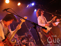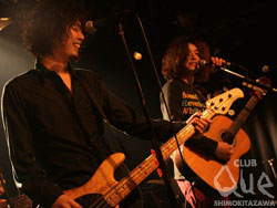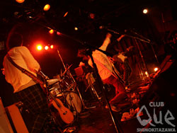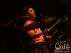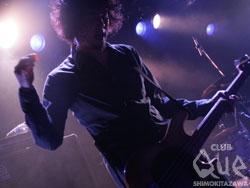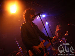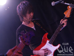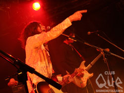 続いてLOST IN TIME。一ヶ月振りのライブに、こちらの熱気も半端じゃない。繊細かつ切れの良いGt.にうねるグルーヴがフロアを駆抜ける。「ヒカリ」「忘れもの」など、日々の矛盾や不安と向き合いながらも真摯に歌い奏でる彼らの姿は切なくも力強い。Vo.海北が空気と心を震わせるように歌い上げ、一音一音を丁寧に凝縮させたロックサウンドにフロアでは無数の手が伸びては揺れた。