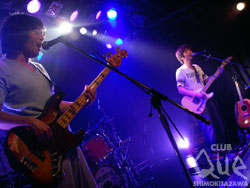 ハックルベリーフィン主催のイベント「草加印」、16回目のゲストはオトナモード。初共演ながら、オトナモードはハックルを「心の師匠」と呼び、MCの端々に憧れをにじませていた。繊細かつダイナミックなサウンドが、観客をぐいぐい引き込む。イベント恒例のカバー曲では「僕の翼」を。5人で鳴らすそれは、より豊かな表情を見せた。そんなオトナモードからリスペクトたっぷりのバトンを受け、ハックルも燃える。優しいお兄さん的な親近感はいつものままながら、気持ちが前に出る熱い演奏を繰り広げた。カバー曲には、世界観が圧倒的と絶賛する「満ちてゆく夜に」を選択。ハックルならではの軽やかさが、曲に新しい輝きを与える。アンコールでは、オトナモードをステージに呼び込み「MOUNTAIN」を披露。総勢8人が無邪気にはしゃぎ回る姿に、フロアも歓喜する。拍手は鳴り止まず、カーテンコール。そこにいた誰もが嬉しそうに笑っていた。"ハックルベリーフィンpresents 草加印 其ノ拾六" ハックルベリーフィン/オトナモード