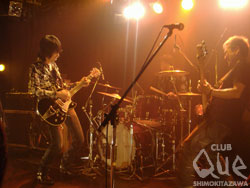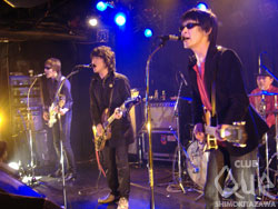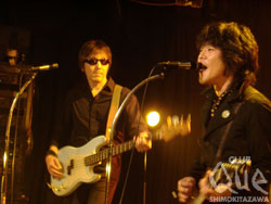 「THE GREATEST HITS」と題したゴキゲンなロックンロール・ナイトが開催された。それもそのはず、THE GROOVERSとTHE PRIVATESというロックンロールの二台巨頭による2マンライブ! 胸躍る夜にならないわけがない。まずはTHE GROOVERS。1曲目「Savanna」から藤井一彦(vo&g)のソリッドなギターとグラマラスなボーカルにグッと惹き付けられる。スリーピースが鳴らす確かな演奏力に安心して身を委ねられ、オーディエンスも自然と体が動き出す。「CLUB Que、イェーイ! 絶滅の危機に瀕している"ザ・○○ズ"が今日は2組も(笑)。ロケンロール!」との藤井のMCに会場が沸く中、次々とクールかつ重厚なアンサンブルを放っていく。ラストの「狂おしきこの世界」まで、見事なステージを披露してくれた。そして、THE PRIVATESが登場。1曲目「I'M A HOG FOR YOU BABY」からもう会場はノリノリ!!! 「OK!? こんばんは、PRIVATESです。下北沢Que! オーライ!!」と話すカリスマ性あふれる延原達治(vo&g)に最高の笑顔を返しながら、ヒートアップするオーディエンスは、タテにヨコにと踊りに踊る。照明を落として真っ暗闇の中プレイされる「BOOGIE GO GO」では、五感が研ぎ澄まされてワクワク度最高潮! 弾むビートに心も弾み、ラストまで一気に楽しませてくれた。鳴り止まないアンコールの中、再びステージに登場したTHE PRIVATES。「気まぐれロメオ」の後で、「俺たちPRIVATESの友達、GROOVERSの藤井一彦!」と藤井を呼び込んで5人でセッションへ。「ROUTE 66」「Satisfaction」を披露し、最高のロックンロール・ナイトを締めくくった。"THE GREATEST HITS" THE PRIVATES/THE GROOVERS