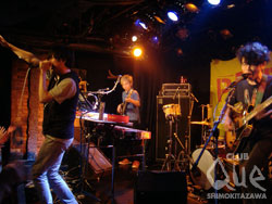 先陣を切ったのはthe chef cooks me。4人組なのに、最初は2人きりで登場してしっとりとバラードを歌いあげたと思えば、舞台の照明がすべておち、simoryoの一声でクリスマスのようなカラフルな照明がメンバーを囲む。"Girlfriend"に聴き入っていたのに、いつのまにか曲はくるりの"Thank you my girl"へ切り替わり、南国色の曲調から台風のような曲調までもをあやつり、幅の広さを見せつける。さまざまな楽器、会場の持つ空気、そして絶え間ない拍手のすべてを味方につけた、手で、耳で、目で、すべてを使って楽しまざるをえないバンド、the chef cooks meの勢いはとまらない。完成されたエンターティナーたちのパフォーマンスに飲み込まれながら、パーティーは勢いをそぐことなくアナへとバトンタッチされていく。アナの一曲目は"SHIFT"。クールな曲調に比例して、会場のテンションはぐんぐん上がっていくというなんとも不思議な心地を味わう。新曲"夜は幻"ではアナの持つセンスの良さを改めて感じ、観客は彼らがつくりだす世界に心地よさそうに身をゆだねていた。アンコールではthe chef cooks meとアナが同時にステージにたち、観客の期待もさらに高まる。イベント名"何も言えなくて・・・梅雨"に合わせてJ-WALKを演奏か!?と思いきや、大久保が出だししか知らないという衝撃のカミングアウトをする一面も(笑)The Flaming Lipsの"The Yeah Yeah Yeah Song"、そしてアナの"DORAMA"を名演、踊らずにはいられない、まさにお祭り騒ぎ状態のまま短いパーティーは幕を閉じたのだった。"アナpresents 「PATROL vol.6 ~何も言えなくて…梅雨~」" アナ/the chef cooks me