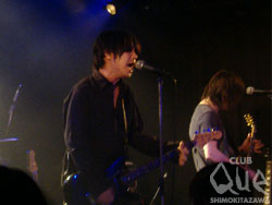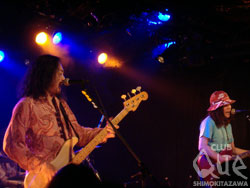 薄明かりのステージ上で、楽器を手に持ち各々のセッティングとチューニングを行う。ドラムのシンバルの音が鳴り、ギターが音を出す。そしてドラムのカウントから、グッとくる音圧が身体に感じる。その音とともに赤白い照明が4人を照らし出す。そう、この日のトップを飾るGHEEEの登場である。近藤智洋(Vo,Gt)と深沼元昭(Vo,Gt)のツインボーカルからなり、疾走感ある曲が間髪入れずに突き進んでいく。曲によってボーカルが振り分けているのではなく、1曲の中でお互いが交互に唄い、そして重なり、聴く人の心と身体を1つにさせ溶け合わせてくれる。止まることを知らないかのように、たたみ掛けるドラムと唸るベース。そして2つのギターが気持ちよく抜けてくる。そんな熱いステージを見せつけくれるGHEEE。なんと16曲もやったというのだから驚きだ。決して長く感じず、もっとやってくれと思ってしまうほどなのだからすごい。そして、カーネーションの登場。骨太くずしっとしたロックでありながらも、柔らかさと鋭さをもつ直枝政広(Vo.Gt)のメロディーと歌詞が魅了させる。MCでは、「GHEEEさ、テンポ速いよ。この後やりづらくて。僕ら長いんだよね。さっき楽屋でドラムの人に聞いたら、やっぱりきついんだって。なんか安心しちゃった(笑)」と皆に笑いを振りまき楽しませてくれる。アンコールも盛大な拍手で迎えられ、会場のボルテージをさらに上げてくれた。この日の2組のバンドは、それぞれの持つ音楽の良さを魅了させた、VS seriesにふさわしい夜だっただろう。"【夏ノ陣 "VS series"】" GHEEE vs カーネーション