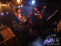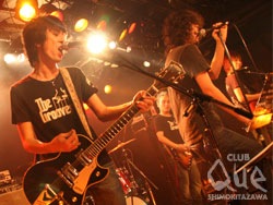 新曲が素晴らしかった。「とても暗くて素晴らしいアルバムが出来ました。明るい後ろ向きの曲が最近多い気がする。暗くても前を向けるほうがいい。」なんかロストらしくて印象に残る言葉だった。アルバム楽しみです。対する、「先輩」THE GROOVERSは最初の音を一発鳴らした瞬間から、体が無意識にリズムに支配されて動き出す感覚がして、すごいなあと思った。バンドの演奏の鉄壁さ、藤井(Vo,Gt)の声の渋さ、かっこいい!貫禄を感じる。その割にMCでは「QUEは16周年か。16年前は4歳でした」・・・・「ロストはかっこいいね!海北くん男前だね!俺らも海北ギャル(笑)の心を掴まないとね!」藤井のおちゃめ? な発言に和みつつ会場も明るく盛り上がった! アンコールでは2バンドのセッション。藤井はロストのサポートギターの三井のギターの師匠と判明。そして、THE GROOVERSの「車輪の上」を海北がボーカルで演奏! 熱いセッションを繰り広げる「先輩×後輩」のステージ上はとてもほほえましく、ステキだなあと思った。THE GROOVERS/LOST IN TIME