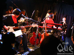 advantage Lucy主催の東北大震災のチャリティーイベント。収益は全額寄付という今回の公演。会場は多くの人が集まっており、SOLD OUTに近い状態。最初のHARQUEは、HARCOとQuinka, with a Yawnのユニットで、それぞれの曲も披露し、踊りも交えながらのお茶目な部分も見せてくれたステージ。心に染み入る優しい歌が会場を包み込む。空気公団のライブは座っての演奏。ゆったりとした曲が多いのだが、一つ一つの音が丁寧に響き渡り、歌は心に優しく伝わってくる。途中では、ゲストとしてadvantage Lucyの石坂さん(Gt)が登場し、ステージ中央に立たされて一緒に演奏。その光景が面白く会場から笑いがこぼれる。空気公団のライブもそうだが、この光景はかなりレアなものとなった。そして、最後はadvantage Lucy。これからの一日が始まるような明るい曲と、アイコさん(Vo)の歌声がとても心地良い。彼女たちが持っている世界観が、このイベントの趣旨とすごく合っているように感じてしまう。MCではライブハウスにたくさんの人が集まってくれたことで、感動して涙が出てしまうほど。出演した3組ともに共通する、ぬくもりや暖かさ、そしてこのイベントに対する皆の想いがたくさん詰まっていて、多くの人に伝わり大成功だったと思う。最初から最後まで、本当に気持ちのいいイベントで、また違った形でもこの3組のライブを見てみたいと思ったのは皆同じだっただろう。"「ここから2011」~東日本大震災 チャリティーイベント~" HARQUA/advantage Lucy/空気公団