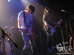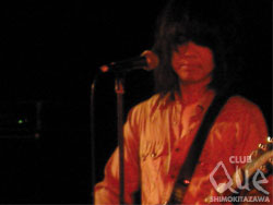GHEEE vs KGSS ON THE PEAKS のツーマンライブ。CLUB Queは夏ノ陣期間中。SEが流れて最初に登場したのはKGSS ON THE PEAKS。ギターの音ともにライブが始まる。1曲目が終わると結成してまだ間もないKGSSは、MCで頑張りますと挨拶。そしてふた山めにいきますかと2客目に。心地よいギターの音に、軽快なベース音がノリノリにさせてくれる。エレキでのツインギターで、かなり歪んだ感じなのだが、うるさくも無く、本当にきもち良く最後の曲まで楽しめた。そしてGHEEEの登場。待ちに待っていたかのように会場がざわつき始める。「Bloody Tiffany」から始まり気持ちが高揚していく。とにかく早いビートで隙を与えないライブには、目が離せなくなる。ツインギターとツインボーカルの兼ね合いが凄く気持ちよい。全力疾走で駆け抜けていくGHEEE。止まることを知らないかのように、1時間で18曲くらいやっていたとか。さすがに圧巻のライブで時間が過ぎるのがあっといまに感じてしまう。どちらのバンドもキャリアを積んでいる人達。仲間と一緒に出す音楽の素晴らしさを改めて感じてしまう。"CLUB Que夏ノ陣 2011 【VS SERIES】" GHEEE vs KGSS ON THE PEAKS
