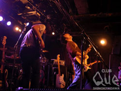 THE WAYBARKが1stアルバム『THE WAYBARK』のレコ発ツアーファイナル、試練の七番勝負 第1戦が開催。日本最高峰のライブバンド、ロックンロールの先輩方を招いてのガチンコライブを展開するこの企画に、公演のスペシャルゲストとして曽我部恵一BANDを迎えての2マンライブ。当初は曽我部恵一さんのソロでの発表だったのだが、急遽バンド編成での参加になったとのこと。その一回戦に迎えられた曽我部恵一BANDがステージに立つ。「SONG FOR SHELTER」から始まり、新曲が目白押しのレパートリー。「月夜のメロディ」は歌詞が心に響き名曲と言ってもいいほど。孤独やゆれる感情を切々と歌い、かつ爆音で駆け抜ける感じでパワフル感を持ち合わせ、それでいて温かさを感じさせ魅了する。最後には「魔法のバスに乗って」を演奏。そして4名からなるロックンロールバンド。「猪木イズムの継承者」「明るい青少年のロックンロールバンド」をキャッチフレーズに掲げるTHE WAYBARKの登場。ハイ・ボルテージなライブ・パフォーマンスと何のギミックもない潔い演奏で、明るい青少年達に向けて、抑えきれぬ興奮と衝動を爆発さたサウンドで、説明など必要もない真っ直ぐなロックンロールを聴かせる。単純で簡単そうなスリーコードのロックスタイルなのだが、真似しようにも彼らにしか出せない唯一無二のロックンロールとしか言いようがない。全力の彼らに誰もが応え呼応する。正に真剣そのもののガチンコライブを終始披露してくれた。始まったばかりの七番勝負。この後も引けをとらない最高のツアーライブを見せてくれるだろう。"THE WAYBARK TOUR2011 FINAL~twb typhoon~ 試練の7番勝負 第1戦 VS.曽我部恵一BAND" THE WAYBARK/曽我部恵一BAND