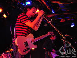 「働き者よ、大志を抱け! カスタ商事の下北沢メイデーパレード」と名を打ったザ・カスタネッツのワンマンライブ!Queでのワンマンは久しぶりらしく、待ちに待ったお客さんで会場が賑わう。スタート時間が少し過ぎたところで、薄暗いステージからメンバーが登場すると拍手が鳴り響き、明かりが照らされる。懐かしい曲が多めの演奏で、確かにいつもとは違う選曲と違う流れ。ところがこれが意外にも、全く不自然さがなく然も新鮮でとても良よく、演奏はもちらん歌声もステージ上もキラキラと輝いて引き込まれていく。懐かしい曲にはお客さんもテンションが上がり、なにより多くの笑顔が見受けられ楽しんでいるのがひしと伝わってくる。カスタの音楽の魅力は、遊び心であったり、少年のような無邪気さに心がくすぐられる感じがなんとも言えない。そしていい意味での単純さと普遍性が隠れていてるバンドなのだ。そんな彼らだからこそ、今でも多くの人に支持されているのだろうし、彼らの音楽が鳴り続いてきている理由でもあるのかもしれない。もちろんこれからも止まることなく、ゆっくりかもしれないが前進していくだろう。"働き者よ、大志を抱け!カスタ商事の下北沢メイデーパレード " ザ・カスタネッツ -oneman-
