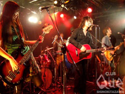 バンド編成では久しぶりのライブとなった近藤智洋。とは言え、GHEEEや今年から始動したThe Everything Breaksでも活動している。もちろんソロでの弾き語りライブも精力的に行っているが、ザ・バンディッツ・リベレーションでのライブはどこか特別感がある。ライブは名曲『Everyday&Everynight』から始まった。ピロのパーカッションと佐田のSaxが軽快に絡む。途中、ピアノを弾きながら歌う近藤、ベースのヒサヨがセンターに移動する。フレキシブルに動けるのもこのバンドの魅力だ。後半は新曲の『夕闇と少年』『ひとりぼっちのメロディ』を挟みつつ、近藤が踊り出すくらい突き抜けるライブを見せてくれた。続いてunkieが登場し、場内の空気が色めき出す。TOKIEの超絶テクな上に艶やかなベース。青木のソリッドで変幻自在に音を操るギター。モヒカン頭のドラマー城戸はストレートな8ビートから変拍子までグイグイと力強いビートでひっぱる。三位一体となったサウンドが聴く者の耳を捕らえ、その演奏に目を奪われる。MCで城戸が「ロックンロール!」と叫び、フロアごと高揚させる。unkieは歌の無いインスト・バンドながら、音から発せられるメッセージは確かにロックンロールだと感じた。そんなスリリングで艶のある2バンドの競演が、ひと夏の記憶として刻まれた。"AtQue★夏ノ陣2012 VS series" 近藤智洋&ザ・バンディッツリべレーション with ピロ vs unkie