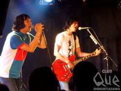 THE COLLECTORSとTOMOVSKYという嬉しくなる2マン。フロアは満員。まずはTOMOVSKYがバンドで登場。『歌う46歳』で軽快に始まったライブ。この日のトモさんは楽器を持たずにどこまでも自由だった。サードクラスと兄のハルさん(Theピーズ)のバッチリな演奏に身を任せ、ステージを動き回る。フロアのお客さんとも自然に会話を交わし、客席に飛び込んだり、『返せ!八つ当たりのブルース~』という即興曲まで飛び出した。こんなに自由なのは、後にコレクターズが控えていたのもあっただろう。MCからもコレクターズへの敬愛を感じさせつつも、自然にライブできるのがトモさんらしいなと思った。そして、コレクターズが存在感たっぷりに熱いビート・チューンで飛ばす。この日は、25年前から歌い続けられてきた『僕は恐竜』など名曲の数々から、今年発売された新曲『誰にも負けない愛の歌』まで、新旧織り交ぜてのセットリスト。The Whoの『SO SAD ABOUT US』もスタイリッシュに決めた。かと思えば、加藤さんとコータローさんのMCにやっぱり爆笑させられる。毎回思うが、そのギャップが最高だ!アンコールの『僕はコレクター』では加藤さんがトモさんをステージに呼び込み、貴重なセッションも。トモさんを背中に乗せた加藤さんの姿にフロアに笑顔が溢れ、会場全体が大きなLOVEに包まれた。"AtQue★夏ノ陣2012 VS series" THE COLLECTORS vs TOMOVSKY