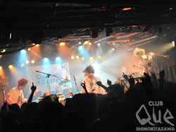 毎年Queで開催されているDJチームGetting Betterの記念イベント。ライヴアクトには毎回豪華アーティストを招いており、今年の出演はthe telephonesとNorthern19。5年前と同じ顔ぶれだ。SEでフロアからはクラップが巻き起こり、威勢良く先攻Northern19がステージに登場。鮮やかなハーモニーと破壊力のあるドラム、情熱的なギターソロで、のっけからフロアのダイヴとモッシュもヒートアップ。コール&レスポンスも完璧だ。前のめりで音楽を楽しもうとするオーディエンス。閃光を飛ばして炸裂する3人の音は弾丸のようだ。スピードを緩めることなく突き進む。「STAY」「YES, I CAN FLY」でステージを締めくくり、オーディエンスのハートに音を刻み付けた。続いて後攻the telephonesはGetting Betterのタオルを掲げてステージへ現れると「urban disco」「DaDaDa」と畳み掛ける。そしてMCで、この2曲がそれぞれ5年前の同イベントで演奏した1番最初と最後の曲であることを明かした。"DISCOって言いたくない時期もあったけど、やっぱ死ぬまでDISCOしたいわ! "と石毛が語り「Keep Your DISCO!!!」へ。覚悟を決めた人間の発するパワーは振り切れていて爽快だ。4人が奏でるキャッチーで鋭利なサウンドに、高揚せずにいられない。その後も4人の音のキレは更に増し、フロアは立ってるだけでも酸欠状態の盛り上がり。終演後も満面の笑みと熱狂はしばらく冷めなかった。Northern19もthe telephonesもMCで片平に感謝の念を述べ、演奏中に何度も彼に熱い視線を向けた。片平もそれに応えガッツポーズをする。同じ音楽というフィールドで戦う勇者たちだからこそ築ける熱い志と絆に、胸を打たれた。"Getting Better~17th Anniversary Party Tour~"Seventeen's Map"@東京 -festival-" Special Live>the telephones/Northern19 DJ>片平実(Getting Better) VJ>Big Mouth
