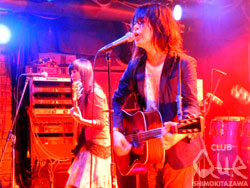 トップに登場したのはLiquid。70年代テイストの熱量たっぷりのロックギターと、斜めにかまえたウッドベースの激しいスラップ、音の隙間を軽快に埋めるタイトなリズムを叩き出すドラム(叩く姿が嵐の松潤そっくり!)。横浜のトリオバンドが生み出す爆音は、親しみやすい風貌ながら、クールなスタンスのタダモノならぬ風格。音の広がりを感じさせるサウンドは、ワクワクして全編インストでも飽きる事がない。2番手は、ロッカーズやルースターズでの活動でも知られるベーシストでダウンピッキングの鬼・穴井仁吉を擁する、もっと最高=MOTO-PSYCHO R&R SERVICE。この日は腰を痛めたVo&Gの澄田健がイスにもたれてプレイするレアなライブとなったが、キュートなルックスの女性ドラマーkannaのダイナミックなリズムに乗せた、男も惚れるロックンロール・ギターは健在。途中でゲストボーカルに、大人の色香漂うケイコ・ウォーカーが登場しカバーを披露。渋さと華やかさが同居する、大人のロックンロール・ショーに魅了された。トリは近藤智洋&ザ・バンディッツ・リベレーション。サックスやパーカッションを含む6人編成で、客席に自然と笑みがこぼれるロックの魔法をかける。赤いアコギと共に涙を抑えきれない激情を抱えた近藤の熱唱と、PEALOUT時代からの盟友・高橋の心躍る爆裂ドラムはよりパワーアップ。♪君の悲しみに鍵をかけないでと歌う、震災前後で曲の聴こえ方が変わった「ディズニーランド」。近藤の気分次第のコール&レスポンスが愉快な「A New Morning」。届いて欲しい張り裂けそうな想いを込めた「独白のブルーズ」。心揺さぶる楽曲の数々に、ライブ終了後すぐ、この夜の続きがまた観たくなった。"TOKYO CAN'T STILL 13-3-27" 近藤智洋&ザ・バンディッツ・リベレーション MOTO-PSYCHO R&R SERVICE[澄田健(G,Vo)、穴井仁吉(B,Vo)、Kanna(Dr)]/ Liquid