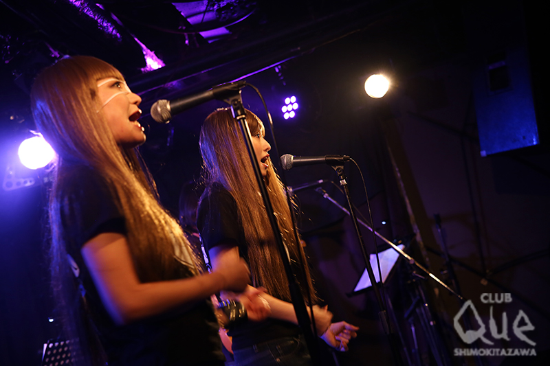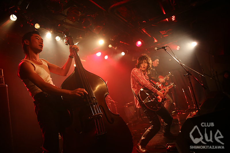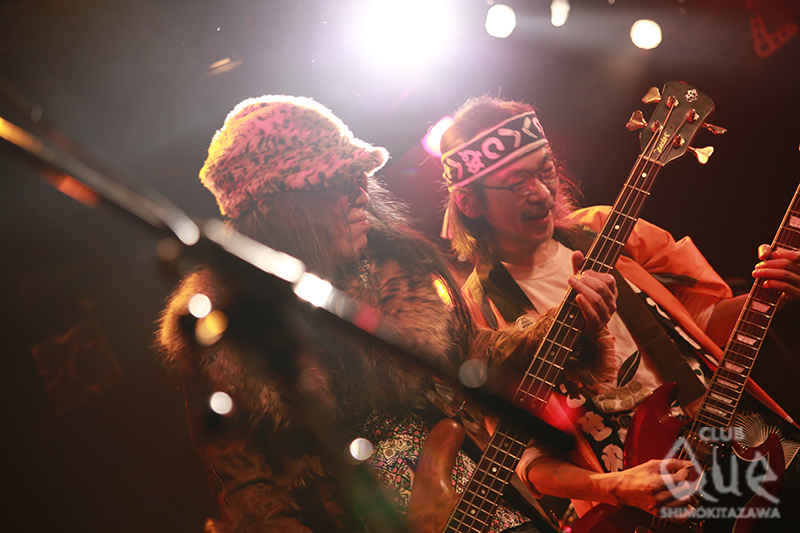 年末恒例の大人気イベント“K.O.G.A COVER NIGHT”の2日目。1番手は、二位店長に打ち上げの席で「声が似てる!」と言われて大抜擢された、ノムライズ野村がボーカルを務めるフランキーちょっとシティ。白のタンクトップ着用のウッドベーシストに、エモーショナルなドラマー中村達子、ギタリストを加えた4人組のちょっと緊張気味のブランキー。MCではボキャブラリーが限られるベンジー語に苦心しつつ、大熱演で盛り上げた。2番手は、キノコホテルのマリアンヌ東雲&イザベル=ケメ鴨川によるPUSSY。ジーパン黒Tシャツ金髪ロングヘアのコスプレで、気だるい振り付けと妖艶な歌唱でPUFFYのヒット曲を次々に披露。一旦、楽屋に戻ると、なんとt.A.T.u.に衣装替えして再登場!「Not Gonna Get Us」を熱唱し、手錠で繋がれた二人がスニッカーズを両端からかじるプレイを魅せつけて終了。3番手に、もうお馴染みの華吹雪は、HARD ROCKと日本の歌の融合!1曲目からサウンドはギターバリバリのAC/DCなのに、歌は「関白宣言」。さらに「Burn」なのに歌は「青春時代」、Creamなのに「祭り」。「契り」を歌いながらお客さんに握手してまわるシーンはなぜか感動を誘う。年の瀬に聴く水戸華之介の演歌が染みる…。ナカジマノブのハイトーン絶叫コーラスも忘れられない。トリを飾ったのは年末チェッカーズ!あの娘とスキャンダル、涙のリクエスト、星屑、ジュリア、ギザギザハート…と大ヒットシングルを連発!サックスの音はまるで本物だし、ギターは本物の武内享が弾いているし、ボーカルAKIRAの歌声はもちろん、マイクスタンドさばき、最後の一言「また一緒に遊ぼうぜ!」に至るまで本物以上にドキドキ!オープニングのアブラーズを彷彿とさせるインストから、シングルB面の「おまえが嫌いだ」での熱狂のアンコールまで、カバーバンドの域を超えたステージングに感涙!2014年は年末以外の活動予告もあり、この続きに期待が高まるばかり。毎年どのバンドも強力な余韻を残すカバナイ、さて次回は誰が何をカバーするのだろう?
