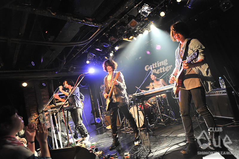 DJ片平実がオーガナイザーを務め、CLUB Queで毎月開催されているオールナイト・パーティ“Getting Better”の18周年イベント。トップを飾ったのは木下理樹。打ち込みの音楽にのせて歌詞のない全編ファルセットの浮遊感漂う一曲を披露し、続けてアコギをかきならしてART-SCHOOLの曲を3曲歌った。どこか頼りなさげにつぶやくMCに親近感を覚えるが、ステージの真ん中で一人弾き語る姿は、やはり絵になるアーティストだ。最後に“Getting Betterと片平くんに捧げます”と「たとえば僕が死んだら」のカバーを訥々と歌って、DJタイムへバトンを渡した。その後は次世代を担う3バンドが登場。平均年齢20歳の京都出身の5人組、HAPPY。3台のシンセが並び、演奏曲によってベースやギターを持ち替える。少年のような歌声にのせた英語の歌詞と、ドリーミーでポップなサウンドが心地いい。メンバー全員、ウェービーヘアが似合う細身のスタイリッシュなルックスながら、MCでは途端にゆるい雰囲気で笑わせるという、アイドル性も抜群!続いて、The fin.。ブルーの照明がよく似合う、清涼感のある歌声が会場に響き渡る。「神戸から来ました!」というMCが疑わしく思えるほど、海外との垣根のないサウンドに驚く。ぎっしり埋まったオーディエンスは、ボーカルのYuto Uchinoがシンセを駆使しながら紡ぎ出す、その美しい旋律にじっくりと聞き入っていた。大トリに登場したのは、asobius。高揚感のあるバンドサウンドをバックに、フロントマン甲斐一斗が指揮棒を手にして、まさにコンダクターのようなパフォーマンスを繰り広げながら、強烈なインパクトでメロディアスに歌い上げる。その壮大なスケール感にとにかく圧倒!曲を重ねる毎に魅せる多彩なサウンドに引き込まれた。新進気鋭のバンド達と、Getting Betterに集まった目をキラキラさせたオーディエンスから、2014年がワクワクするようなパワーをもらった、素敵な一夜となった。