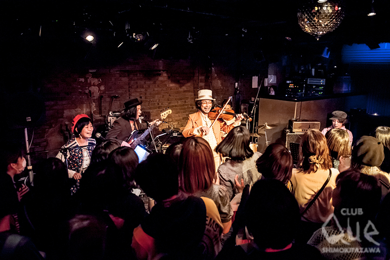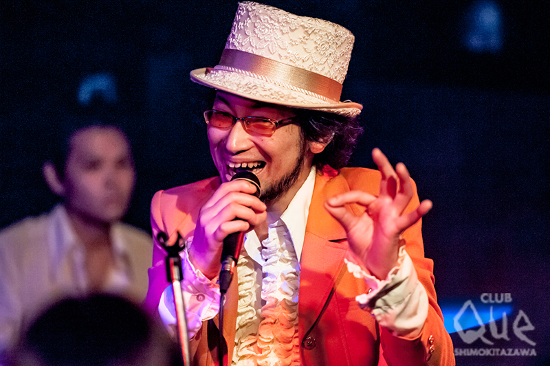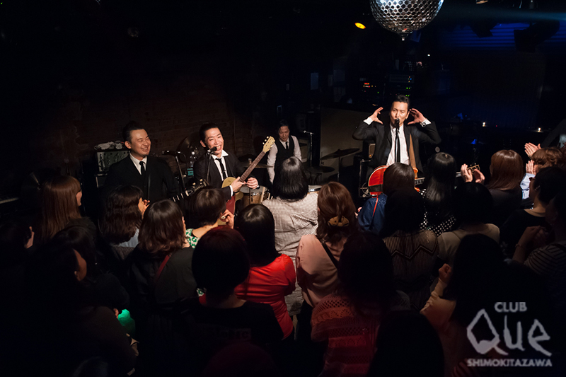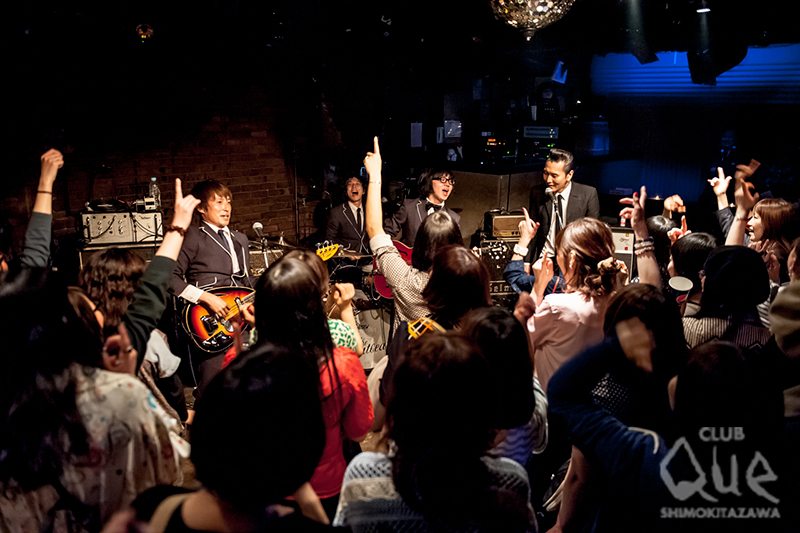 “BEAT ON THE FLOOR”と銘打たれた今宵は、THE NEATBEATS(以下:ニート)が仕掛けるステージ・フロア大逆転、スピーカーを通すのはマイクのみの生音ライヴ。THE PSYCRONSがファズの効いたエッジィなグループサウンズをぶちかまし、「御意見無用」の祭り囃子でオーディエンスを煽り、「エンターテイメント」のコール&レスポンスでMR.PANも乱入し、堂々の第一走。東京に初めてニートを呼んだという3ピースガールズロックバンド、THE PEBBLESにバトンを渡す。揃いのサマードレスから伸びる腕で紡ぐ、キャッチャーでキュートなアンサンブルが痛快。バンド存続の危機に直面した際、MR.PANに激励されて作ったとゆう「LOVELY MOMENT」を披露するなど、ニートとの深い絆を感じた。そんなセンチメンタルな雰囲気を、一瞬で喜劇色に塗り替えたのは、ハッチハッチェルオーケストラ。アッパーなカンツォーネ「調子っぱずれに祝福あれ」からスタートし、6人編成で愉快な人生賛歌を次々奏でてゆく。スイングビートに乗せて人妻との情事を一人二役で演じる「うわき者たち」では胡散臭い世界観が清々しいほど全開。THE BEATLES「She loves you」のフレーズで『ハッチェル、イエーイエーイエー!』と歌い、ベートーヴェン「交響曲第9番」を観客全員に合唱させ、エアギターのウィンドミル奏法が炸裂した「できそこない行進曲」で喝采の大団円。観客参加型ミュージカルのような一体感の中、トリのニートが登場。出演者に対する野次みたいな賛辞を述べ、「FARMER JOHN」からハイテンションな滑り出し。『増税になりましたんで、3%増量でやってます』と言ってのけるMCも絶好調。オール・ヴィンテージ機材のクラシカルなサウンドを直に体感できるのも生音ならでは。距離の近さも相まって、凄まじい熱気がQueを包み込んでゆく。「I CAN TELL」「BABY THAT IS ROCK & ROLL」「黒いジャンパー」の鉄板フルコースからアンコールまで、脱兎の如く駆け抜けた鮮烈なラストラン。歌あり涙あり笑いあり、ドーパミン大放出の3時間だった。今後も継続的に開催する模様なので、ナイスミドルのフロアライヴに要注目!