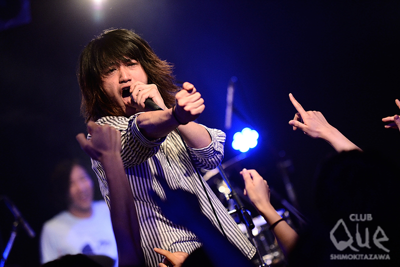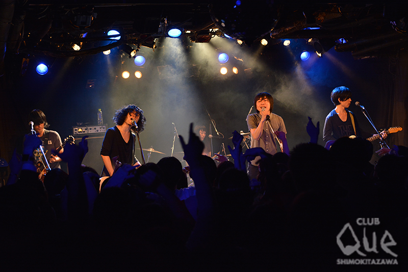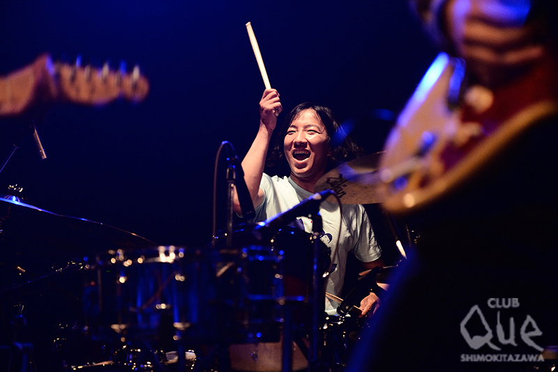 つばき、そしてTHE TURQUOISEのベーシスト小川博永氏2DAYS、「OPERATION Que HATACHI」の初日。今日はつばきとTHEラブ人間の2マン。トップバッターは、久しぶりのTHEラブ人間。昨年はベーシストの脱退から一度も出演できなかった。今年に入って新しいメンバーが決まり、春から活動再開。今日は新しいベーシストでの初CLUB Que。かなり懐かしいSEが鳴り、メンバー登場。ボーカル金田康平がいきなりハンドマイクで会場を煽る。立て続けに2曲披露。すでにクライマックスなのか!? と思うぐらいの熱唱ぶり。全員でコーラスをとる「東京」、この時期にぴったりな「大人と子供」を披露。ステージ上から感謝の言葉が続く。あー、この人は歌うことをやめられないんだろうな。まるで息をするかのように、当たり前のようにステージに立つ。その姿は覚悟を決めた人間の生き様があった。最後の曲は、名曲「砂男」。下北沢より世界へ、彼らの新しい挑戦が始まる。そして昨年の復活ワンマンより約1年ぶりの登場、つばき。あれから自主企画を中心に活動して、今年に入り少しずつステージを増やしてきた。今回のセットリストはほぼ全時代を網羅したいわば、ベストな選曲。2006年発表の「瞬き」からはじまり、立て続けに3曲を披露。このバンドにはストーリーがある。彼らがそのステージに立っている、という事実が、叙情的な歌詞を更に見るものを釘付けにする。メジャーデビュー曲となった「昨日の風」や、新曲「フクロウ」なども披露。5人編成でのライブでより壮大にそしてドラマティックな楽曲たちが、ステージを彩る。彼らが同じ時代に存在していることに感謝した夜だった。
