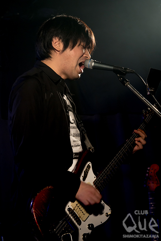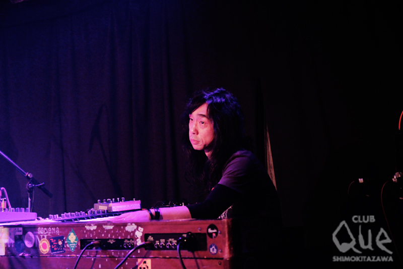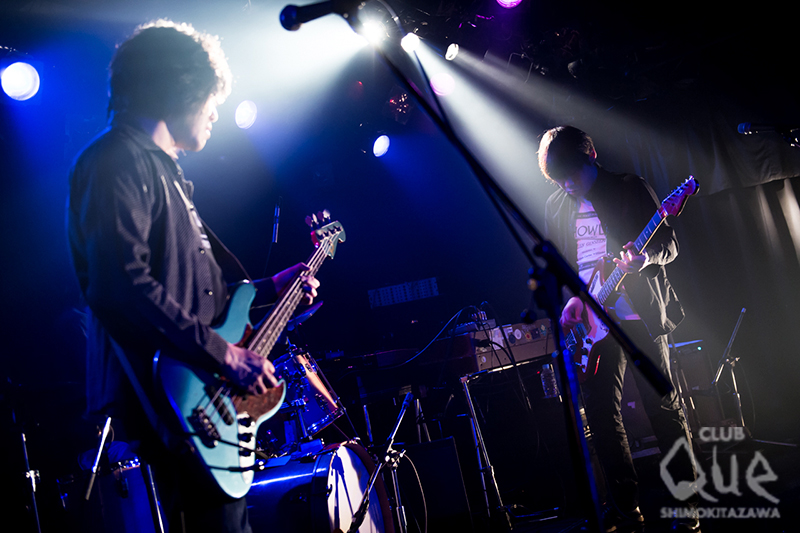 日本オルタナティブ・ロック・バンドの草分けであり現役であるdipが、『neue welt』リリースツアーを兼ね、CLUB Que 20周年2DAYS シリーズに参戦。スモークの充満する舞台にヤマジ(Vo.Gu.)、ナカニシ(Dr.)、ナガタ(Ba.)が現れ、飛行機が離陸する効果音に合わせ「It's Late」からテイク・オフ。ドープなベースとめった打ちに叩かれるサディスティックなドラム、鋭利なフェンダー・ジャズマスターがどあたまから壮絶な音のトライアングルを作り出す。「Hasty」「Purge」と続き、ゲスト細海魚(Key.)を迎え「Iciclemen」「Fire Walks With Me」「HAL」「Neurotic mole」と新譜からの楽曲を連投。センシティブなキーボードがdipの世界観を増幅させる見事なアンプとなり、観客を魅せる。再びトリオとなり、“古い曲を”の一言からディストーション・ギターのイントロが爪弾かれ「13階段への荒野」へ。物憂げなグラウンジ・サウンドと、重たいリズムが滲むように混ざり合い、点滅するフラッシュ・ライトが場内のテンションを一層上げてゆく。「Final Song」の夢遊病者のようにのたうち回るワルツ、「Melmo」のハードボイルドな8ビートをお見舞いし、エッジーでノイジーなハード・ロック・ナンバー「Fly By Wire」で咆哮のようなバンド・グルーヴを炸裂させ、今日1番の喝采をフロア中に巻き起こす。途切れることのないアンコールのクラップに応え、4人が再登場。ヤマジがくわえ煙草のままサイケデリックなリフを刻み、細海魚のエレクトロニカな鍵盤と楽器隊が加われば、瞬く間に「9souls」の獰猛なビートがクレッシェンド。冒頭で飛び立った飛行機が大気圏を突破し、広大な宇宙空間へ投げ出されたような錯覚を起こすほど圧倒的なスケールに、ただただ身を委ねる他なかった。ナカニシがメイン・ボーカル、ナガタがスタンディング・ドラムの変則編成で、The Velvet Underground「Femme Fatale」をカヴァーし、約2時間に渡るフライトは終了。無事に現実世界へ生還したものの、しばらくはあの流星群のように眩いアンサンブルが脳裏から離れそうもない。