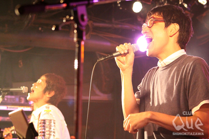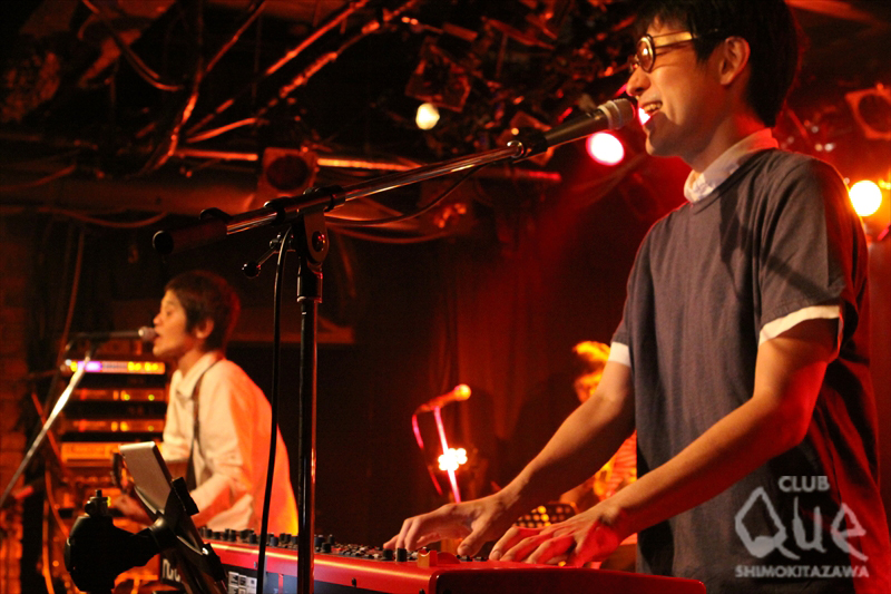 1996年7月3日にメジャーデビューしたホフディランの18周年記念ワンマン。レギュラーサポートの田中元尚(Dr.)が前日に、北田万紀(Ba.)が翌日に誕生日を迎える。CLUB Queも20周年。その上、ソールドアウトときたら盛り上がらないわけがない。オンタイムで暗転し、ガーシュイン「ラプソディー・イン・ブルー」が流れ、バックバンドBEST3を引き連れた小宮山雄飛(Vo.Key.)とワタナベイビー(Vo.Gu.)が登場。「あまりに大きな君」「FREE STYLER」とのっけからアップテンポに攻め、『どうもホフディランです。18歳になりました!』と挨拶。懐かしの「話があるんだ」、これからの季節にピッタリな「summer time POP!」、軽快なキーボードの音色が転げ回る「STAND」を演奏し終えると、安藤健二郎(Cl.)を呼び込み6人編成で「カミさま カミさま ホトケさま」へ。ビートルズ「ヘイ・ジュード」、フィンガー5「学園天国」のコール&レスポンスでフロアとの親和性を高めてゆく。演奏中に予期せぬMCを頻繁に始め、爆笑を巻き起こす2人だが、そこで曲を中弛みさせることなく、キッチリ盛り返す阿吽の呼吸はさすがの一言。「歳とることさえ」「夜をこえて」「育児研究中」の新曲群も、「夜」「欲望」等の名曲群も、同じように心に届くのは、きっとメンバーが同じ景色を見つめ、現在進行形のアンサンブルを鳴らしているから。長らく活動を休止していたホフのファンにとって、こんなに幸せなことはない。ぶちあげライヴチューン「SUPER DRY」では雄飛がハンドマイクで縦横無尽にステージを飛び回り、水平チョップの音止め・気合い注入パフォーマンスでオーディエンスに火を点け、おびただしい拳がフロアを埋め尽くす。間髪入れずに「LOW POWER」を投下し、ペットボトルの水を撒くと火は消えるどころか増々燃え上がり、結果、予定外のトリプルアンコールへ縺れ込むほどの炎上っぷり。『声ガラガラだけど呼んでもらったから精一杯やります』と披露されたのは、説明不要のポップ・アンセム「恋はいつも幻のように」。雄飛のリードヴォーカルとベイビーのコーラスが生み出すハーモニー、淡く切ないメロディーがまどろむように溶け合う、極上のラスト。終わったそばからデビュー20周年イベントが待ち遠しくなる、素晴らしい夜だった。 [文/宮本貴子 撮影/栗田香那]