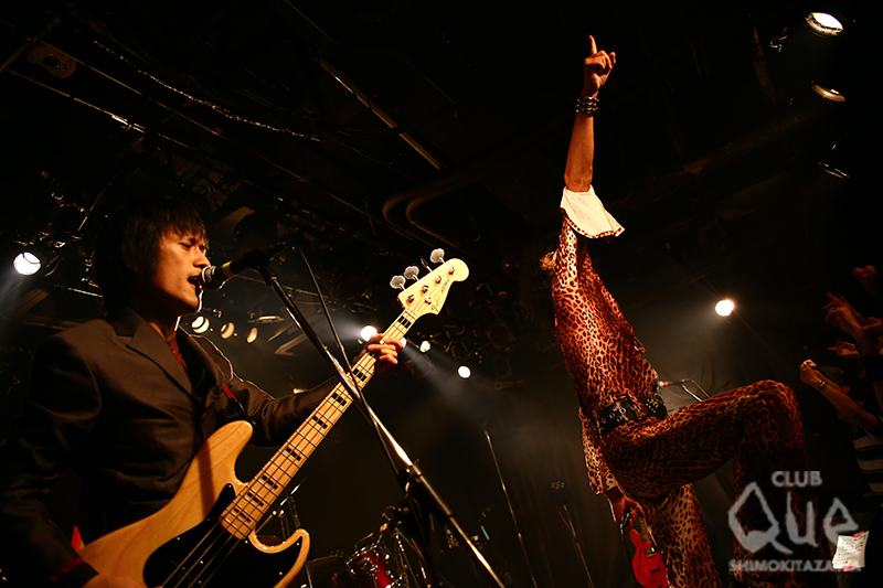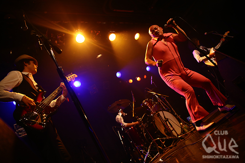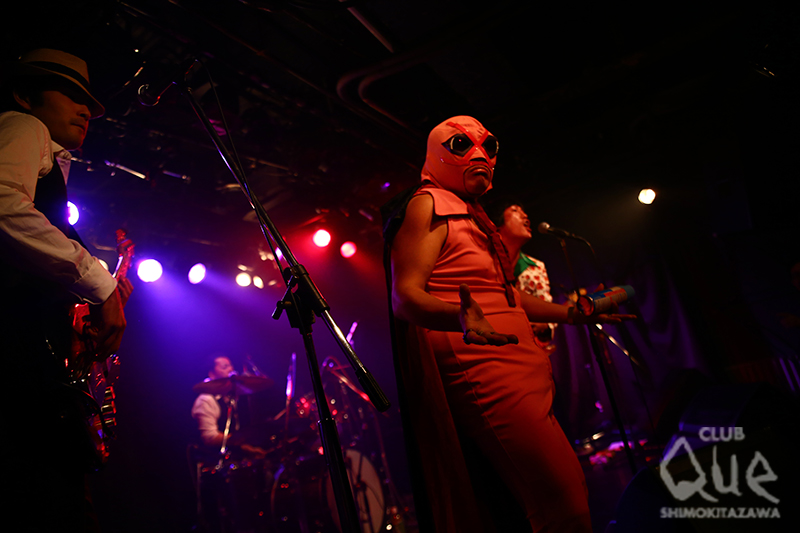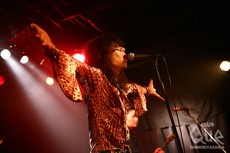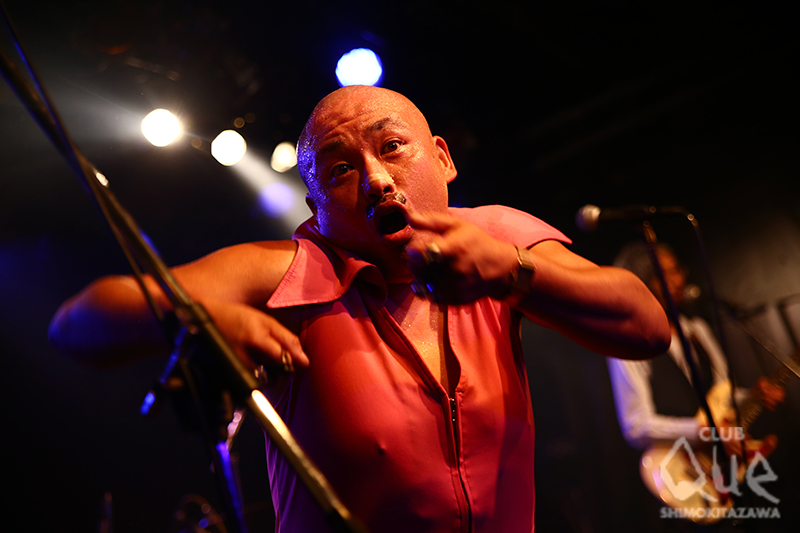 騒音寺の2マン2デイズ2日目。数年ぶりに盟友と共演を果たすということでどんな夜になるのか期待に胸が膨らむ中、先攻はザ・たこさん。楽器隊とMCがステージに現れ演奏が始まる。「ロクシマのテーマ」でMCが呼び込み、真っピンクのジャンピングスーツを身に纏った安藤八主博(Vo.)がやる気満々の表情で登場するとどっと歓声が沸いた。濃密なファンクと独自のユーモアを交えた演奏、あっと言う間に観客の心を鷲掴みにしていった。あの有名な名言“道”を題材にした「猪木はそう言うけれど」では、滝のように流れる汗をぬぐいながら力強く歌唱。安藤が愛するスポーツ新聞“大阪スポーツ”を歌った「大スポPOWER」、「ナイスミドルのテーマ」とパワフルにときにコミカルに歌い、笑いを誘いつつ圧倒的なグルーヴで観客を魅了した。続く騒音寺は、1曲目から20年のキャリアの中でも数回しか演奏したことがないという超レア曲「きかん坊」を披露。前日とは一転、ミドル・テンポのナンバーでじわじわと熱気を上げていくような展開だ。たこさんのライヴをほぼ全部見たというなべ(Vo.)は、久しぶりの共演を喜び「猪木はそういうけれど」は、自分がリクエストした曲だと明かした。そんなたこさんは、知らないんじゃないかな?と披露した「ヤング・ジェネレーション」は、いつになく深い情がこもった印象で熱いサウンドが胸の奥まで染み渡っていった。終盤、なべが10年前Queでやれる日が来るなんて思ってなかったと、ロックンロール一筋で貫いてきた中で目の当たりにしてきた苦悩を語った。“ムカつくことがあったら、俺に全部ぶつけて帰れ!”と叫びラストは「SO-ON☆G」で派手に締めくくった。早速のアンコールでは、ザ・たこさんの山口しんじ(Gu.)のリクエストで「Rock and roll(will never die)」をコラボ。安藤もTENGA片手に壇上に上がり、乱痴気騒ぎ!タム(Gu.)と熱いギターの掛け合い、オーディエンスと”絶対死なない!”の熱烈なコール&レスポンス。最後は、壇上にいるみんな手を繋ぎ万歳!20年間の歩みを爆発しあう、深いロックの絆が築いた素晴らしい夜だった。 [文/大島あゆみ 撮影/ame]