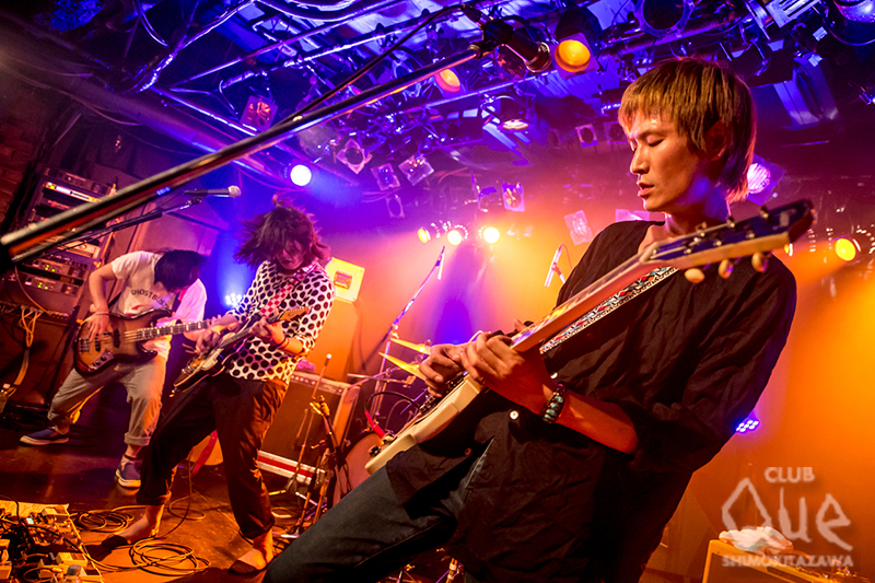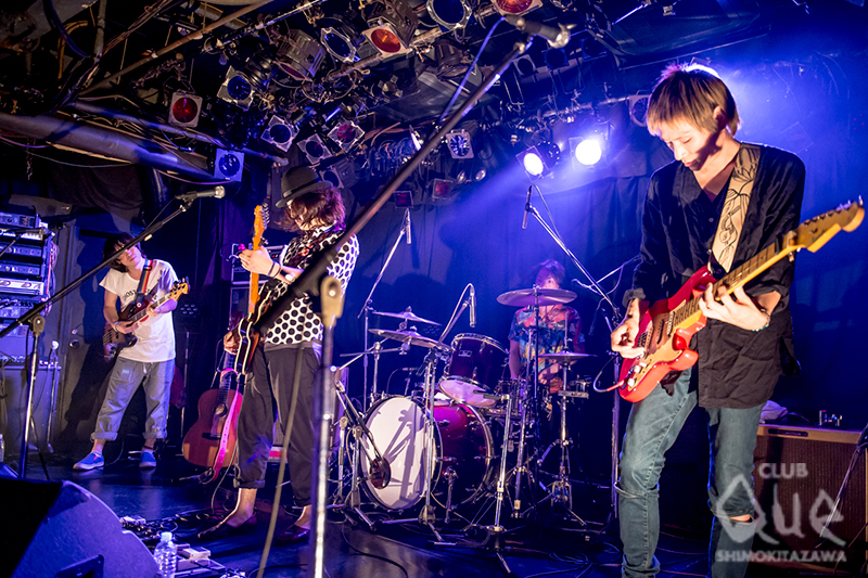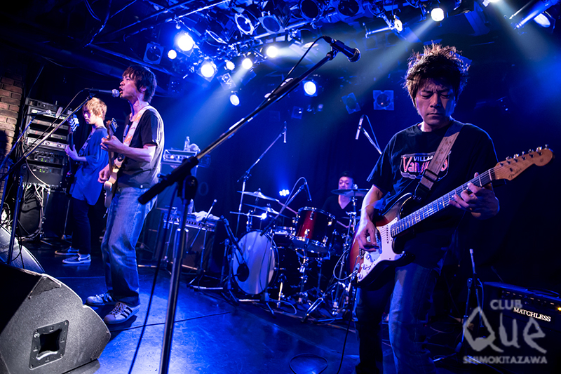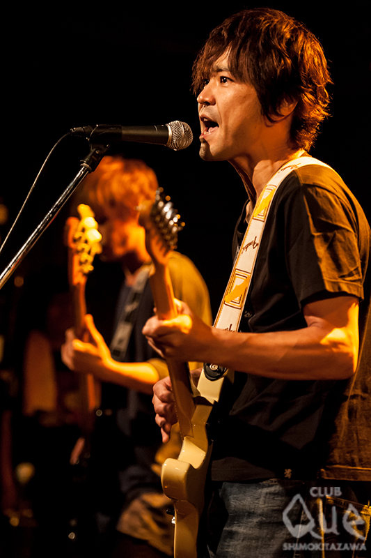 夏ノ陣3日目。ザ・カスタネッツとの対決の先陣を切るセカイイチ。岩崎の合図でメロウな世界が広がる。すっかり身をゆだねていると、突然「カスタネッツ以外は!」と叫び、♪年寄りはみんな~と歌い出した。ハッとして「いや、カスタネッツは年寄りじゃない!」と焦る岩崎。今日の対決が楽しみだった裏返しのようだ。「いつも以上にやってやる!」と気合いを見せる。新曲の『光になる』を交え、久しぶりに披露した『考え過ぎの僕がいる』ではフロアから歓声も。その気持ちに応え徐々にヒートしていく。セカイイチのライブは、岩崎の歌声が、中内のギターが、吉澤のドラムが、サポートのハル.のベースも含めて、耳から入ってきたそれぞれの音が心臓の辺りでそれぞれ響いて聴こえる。心臓の奥でちょうどいいミックスになるように計算されたかとさえ感じる。ライブが進むにつれ、その音たちは確実に存在を大きくしていき、岩崎がアコギに待ちかえての最後『あかり』では、タイトルどおりフロアに温かなあかりを灯した。後攻はカスタネッツ。『感情』から感情の赴くままスタートしたかと思えば「年寄り担当です!」とピリッとしたネガティブ発言。毒のお返し?と思いきや、どうやら先陣を切ったセカイイチに触発された模様。「いつも以上にやってやる!」と同じセリフで気合いを見せる。今の季節にぴったりな『夏なんです』から「もう夏を振り返ります(笑)」と『夏の記憶』へ…もう20年近く前の曲が懐かしさどころか新鮮に聴こえる不思議。一見、衝動的で投げやりに聴こえる牧野の歌声と1曲1曲を丁寧に伝える真摯な眼差し。姿勢。今はその歌声に年を重ねた艶っぽさも加わったが、“衝動と真摯”という相反するものが作り出す不思議な魅力は変わらない。溝渕と「サポートして10年になります」という小島のリズム隊が、その不思議を当たり前の存在のように支え、「これがカスタネッツのバランスだ」と誇示するように小宮山のギターが鳴る。始まりから終わりまで新旧取り混ぜた流れが年代を超えて、今の形で響いていた。セカイイチとザ・カスタネッツ。それぞれの絶妙なバランスを魅せられ、ワクワクが止まらない夜だった。