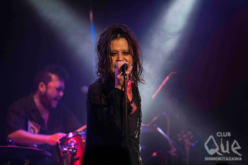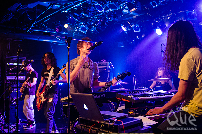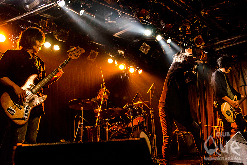 さて、この日はジェッジジョンソンとLOOPUSの2マン。ジャンルが異なれば世代もキャリアも違う2組の共演ということで、予測不可能。ドキドキのなか幕が開け先攻は、ジェッジジョンソンは、疾走感溢れるミドル・チューン「HEADLINER」から、キャッチーなダンス・ナンバーを次々と披露。まるで4つ打ちフルコースと言わんばかりのノリのいい曲ばかりで、体がうずうずして自ずと揺れてしまう。後半は、バッキバキのエレクトロを核にしたナンバーにシフト。ボリューム感のあるボイスエフェクトとエネルギッシュなプレイは、異次元に誘うかのような熱量を放っていた。ラストは、夏らしさを感じさせる華やかなシンセと骨太なバンド・サウンドを交錯する「夜をこえて」でLOOPUSにバトンを繋いだ。妖しさを纏うような全身黒でまとめたスタイルで登場のLOOPUSは、パワフルなビート・ロック「Jesus Vice」から、独創的な歪みを生かしたナンバーをプレイ。MCで語られたがLOOPUSのQue初出演は、1997年のこと。宙也(Vo.)は“暗―い盆踊りだと思ってください(笑)”と言ってみせたが、当時からのダークかつ耽美な音色と佇まいで空間をシリアスに彩るのはさすが。否応なしに幻想的な闇の世界に引き込んでいく。イントロのピアノの同期が印象的な「Unknown2World」から、ダンサンブルなロック・チューン「Biorising」まで多様なナンバーで盛り上げる。終盤、王道ロック・チューン「G-macine」では拳があがりコール&レスポンスでハードにキメ込んだ。アンコールでは、バンドにとって大事な名刺がわりとも言えるメジャー・デビュー・シングル「Soulmate」を披露して〆。まるで“陰”と“陽”のような、2組の異なる“アンダーグラウンド”が入り混じった最後まで異色を楽しめる夜だった。[文/大島あゆみ 撮影/藤本美紀子]