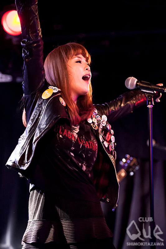 VIVA YOUNG2日目!わいわいと賑わうフロアの中を、“よろしくどうぞ、いらっしゃいませ!”とはにかむような笑顔で登場したのは奇妙礼太郎。冒頭からその柔らかなギターの音色とおしゃべりで、和やかなムードを築いていく。「天王寺ガール」から、ゆるりと演奏を始めると、まるで肩の力を抜くようにあたたかな歌声で観客を魅了する。トークを交えながら、するすると演奏を続け、松田聖子のカバー「赤いスイートピー」では、しっとりとムーディーに歌い上げる。最後は、“もうすぐアラームが鳴るよ~”と終始茶目っ気たっぷりに歌い、持ち時間をしっかり使い会場を盛り上げた。続いては、矢沢洋子&THE PLASMARS。紅一点、圧倒的な歌唱力と、キリッとした眼差しでオーディエンスを煽る矢沢洋子の華やかさと、骨太のロックンロールで惹きつけていく。この日いちばんリアルなヤングでもあったわけだが、縦横無尽にステージを動きまわり確かめ合うように歌い上げる佇まいは、負けずとも劣らないたしかな力強さがある。新曲「Lady No.5」では、フェミニンなリリックを艶やかに歌い上げ、「アドレナリン」では、たまらなくワイルドなハスキーヴォイスを轟かせ、オーディエンスとコール&レスポンス。熱気をもって怒髪天にバトンを繋いだ。トリを飾った怒髪天は、最新作より特撮ヒーロー風の勇ましいロック・チューン「スポーツ大佐のテーマ」をのっけからキメ、フロアは大きくうねるように盛り上がりをましていく。活動再開ライヴが“VIVA YOUNG”であり、『Colors of Life』(CLUB Que 9周年に製作された映画)に出演したことや“66NITE”のことなど、Queとの思い出をおおいに語られた。〆は、1日の疲れやストレスも晴らしてくれそうな「酒燃料爆進曲」。アンコールで「プレイヤーⅠ」も披露し、なんと計13曲を演奏!余すことなく熱を発散し、十数年ぶりのVIVA YOUNGに堂々と華を添えた。