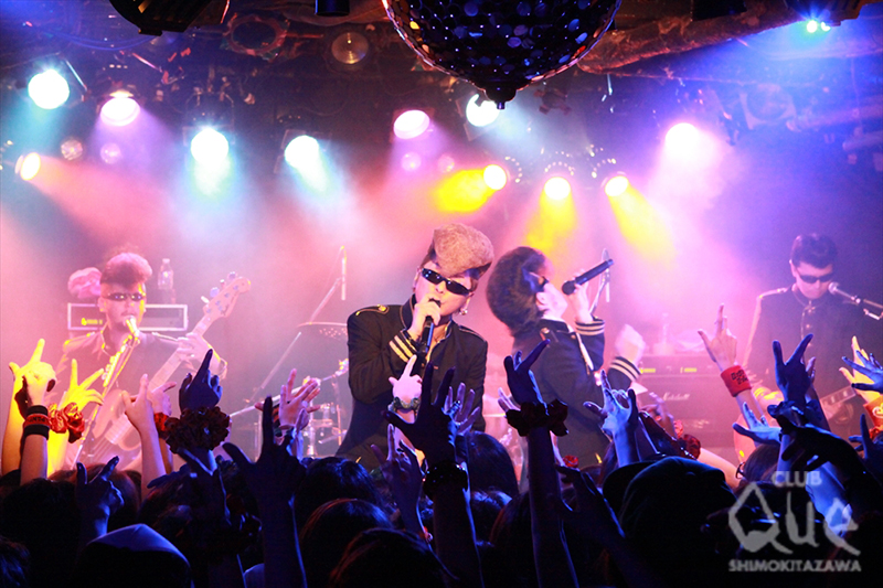 とレア曲も織り交ぜつつ、『女の子に歌いたい曲だけ歌う』というコンセプト通り、とにかく恋愛ソング盛りだくさんのアプローチ。「One Night Carnival」は『俺んとこ、こないか?』の後に『いくいくー!』(ウチくる!?のイントネーション)とオーディエンスに叫ばせ、『俺たちまるで、恋人同士みたいじゃね!?』と甘いキメ台詞を吐き、天井知らずの恋愛モードに場内はメロメロ。火のついたKISSESの乙女心はそう簡単には消えず、結果、想定外のトリプルアンコールにもつれ込むほどの燃え上がり。客席のリクエストに応えた「東京」、hideのカヴァー「ROCKET DIVE」