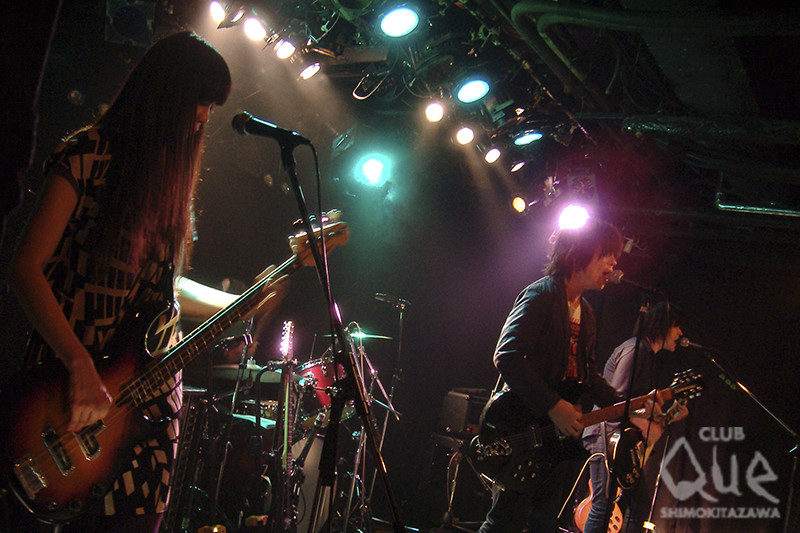 名阪ツアーに続いて、なんと約一年半ぶりとなるGHEEEのワンマン。他のバンドの活動でも大忙しなメンバーの集合体ゆえだが、胸を高鳴らせてフロアを埋める大勢の観客の表情に、その待望ぶりが伺える。1曲目「Bloody tiffany」からロックな爆音が会場を包み、炸裂するWボーカルと、GHEEE以外の何者でもない圧倒的グルーヴで「Guess」まで5曲ノンストップ!後方にどっしり構えて爆音ドラムで圧倒するYANA、サイドから多彩なギターリフの鬼と化して歌声で酔わせる深沼、ベースを弾きながら軽やかなステップで時にセンターを奪うHisayo、客席への飛び出しを常に狙うフロントマン近藤という布陣は健在。MCは、ライブの曲目表で、MCを表す点線が近藤&深沼には見えなかったという定番の初老ネタ。2007年の結成から変わらない見た目とパワー全開の演奏とのギャップが可笑しい。MC明けは最新作『QUAD』から「Far gone」は、ゴシックホラー風なリズムからの展開が印象的な曲だ。ライブ終盤、新曲「Alone a head」に続く「Silver tongue」は、赤いマニキュアでの指弾きも色っぽいHisayoの歌パートもあり、深沼とのハモりも聞き所。「On the beach」ではお客さん参加の「イェーイイェーイ」の掛け合いが楽しい。本編ラストの「The last chord」でついに近藤がマイクスタンドと共にステージを降りて、大盛り上がりのフロアで熱唱!アンコールは、近藤が“今夜はここが世界で一番ハッピーな場所”と言い、深沼が飛び跳ねながらギターを弾いた「Perfect place」。踊り出さずにはいられない、この曲の持つ特別な高揚感は何なのだろう? 止まない拍手に応えたWアンコールは、心震える名バラード「No knock」。1番を深沼が色気を感じさせる歌唱、2番を近藤がイノセントな熱唱と、二度おいしい味わい。さらにトリプルアンコールを「Cheers for the sun」で応えた。新旧織り混ぜて28曲、最後まで完全燃焼のパフォーマンスで魅せた2時間。2016年はアルバムが出る確率50%(?)という近藤発言もあったことだし、早くも次回のワンマンが待ち遠しい![文:下村祥子/撮影:CLUB Queスタッフ]