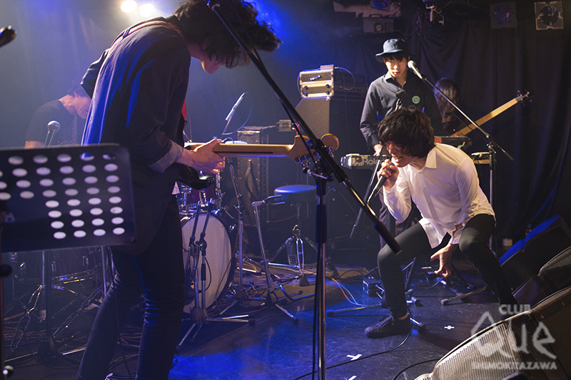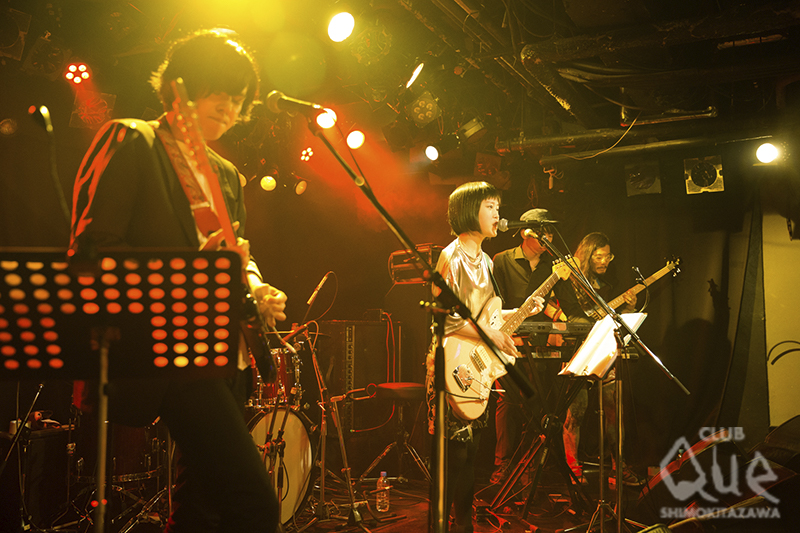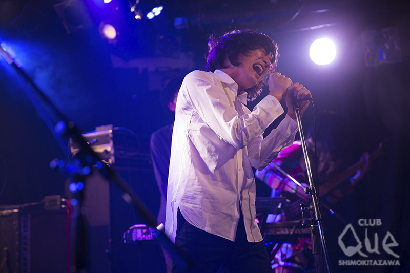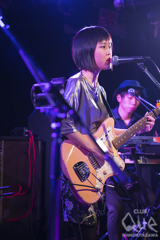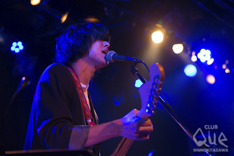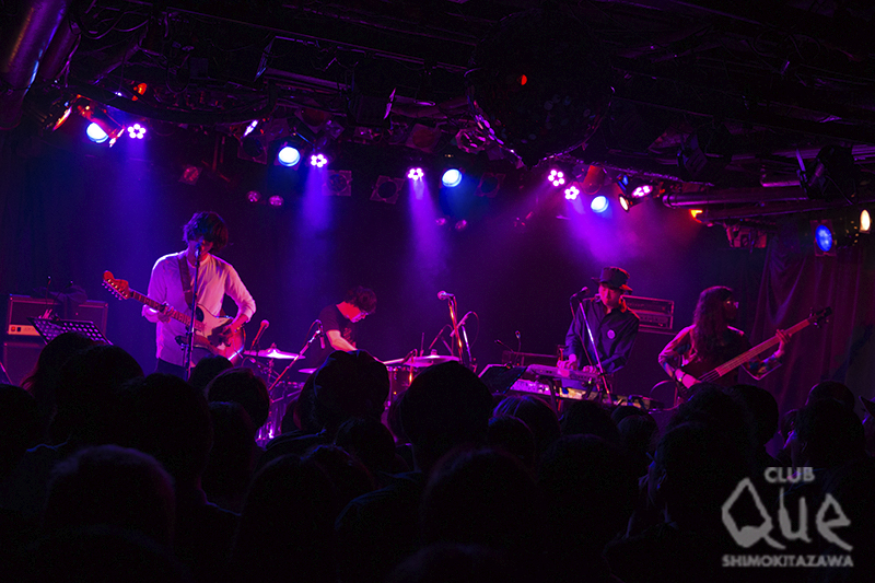 オワリカラのカメダタク(Key)による企画「真昼のミステリーセッション」。まずはオワリカラが登場し「teardrop」でスタート。ゆるやかなリズムのサイケポップなサウンドに、タカハシヒョウリ(Vo.Gu)の艶っぽいシャウトが乗る。続くエレクトロ風な「ドアたち」と、初期オワリカラを魅せたところで、早速ゲストの石崎ひゅーいを呼び込んだ。オワリカラをバックに「夜間飛行」「3329人」を、どうにもならない現実に悶えるような歌詞を情熱的に歌い上げる。弾き語りで披露した「さよなら、東京メリーゴーランド」をカメダは“石に書かれた言葉を見ているみたい”と独特の賛辞を送った。「花瓶の花」では“君をやっとみつけたんだ”と訴えかけてくる言葉が心に響く。カメダとの共演も素晴らしかった。 次のゲスト、Reiにバトンタッチ。ギターを抱えた少女が「Cinnamon Girl」を歌い出すと空気がガラリと変わり、爽やかなロックの風が吹いた。パーティーチューン「Route 246」ではReiの高音シャウトも決まり、オワリカラとの相性抜群でフロアも大盛り上がり! 「BLACK BANANA」に続き、「踊るロールシャッハ」でも最高のギターセッションに酔いしれた。 最後はオワリカラ。初期のデモ収録の渋いサイケナンバー「泣かないで」、ライブで一回やったのみのドリーミーポップな「YASASHII」と、メンバーも忘れていたレアな名曲シリーズを展開。最後は、現在のオワリカラのモードを示した新曲「ラブリー」で場内をサイケの渦に巻き込み、アンコールはゲストも参加した「Q&A」で、それぞれの個性を遺憾なく発揮したライブは華やかに幕を閉じた。 [文:下村祥子/撮影:栗田香那]