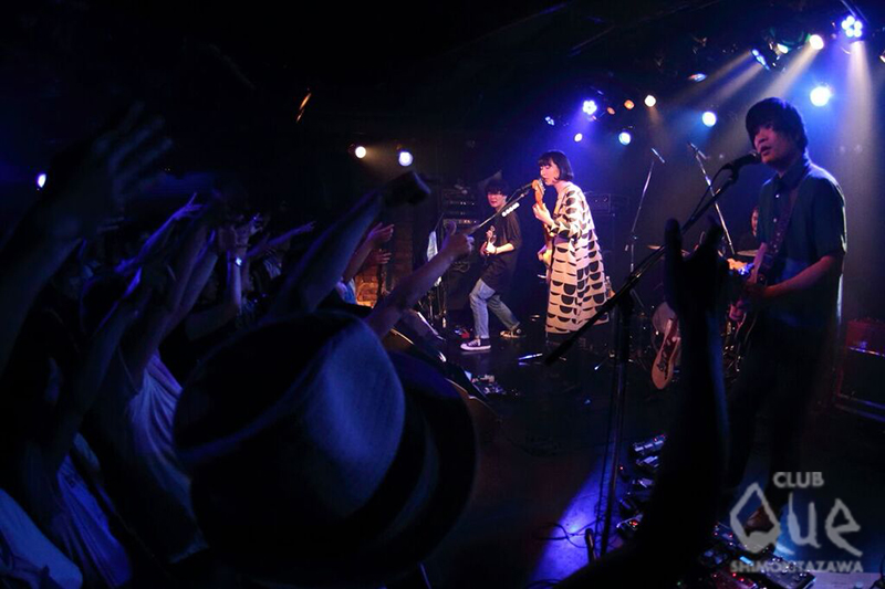ギターを抱えてステージの中央に立つと、前をまっすぐにみつめ、凛とした佇まいと透明感のある声で歌い出した松木智恵子(Vo&G)に、一瞬で心を洗われて目が離せなくなった。一曲目「朝」を歌い終えると「こんばんはピロカルピンです」と一言だけ告げ、次の曲「未知への憧憬」へ。顎のラインでくるんと巻いたボブにワンピース姿、ギターを鳴らしてシンプルに伝える彼女のボーカルが、90年代UKロックを思わせるエッジの効いたサウンドに乗って耳に届く。今夜は、クラウドファンディングを実施し、5月にリリースされた彼らの8枚目となるニューアルバム『ノームの世界』のレコ発ワンマン。松木は「“ノーム”というのは大地を司る精霊のこと。その精霊の小さな小さな、誰も知らない秘密の世界を感じてもらえるように、精一杯演奏したいと思います」と宣言した。もう一人のメンバーでアレンジ等を担当する岡田慎二郎(G)と、アルバム制作にも参加したサポートメンバーのサカモトノボル(B)、冨田洋之進(Dr)が次々と描き出す、スケール感の大きなロックやアップテンポのナンバーたち。ライブが進むにつれて、浮遊感をまとったのびやかなボーカルと尖ったギターサウンドの共存がより深まっていく。 「わたしはピロカルピンで“アルバムを10枚出す”という目標があるんですが、アルバム毎に発見があって、今回は音楽の不思議さを感じて。もっと知らないことが沢山あるんじゃないかなって思わせてくれる作品になりました。一生モノの作品が出来たと感じています」との松木の言葉に、会場から大きな拍手がおくられた。 静かな情熱で噛みしめるように聴いていたオーディエンスが、「南十字星」でステージに呼応して歌い出し、手拍子が沸いて歓声が上がった。ドラマティックな展開を魅せる「風立ちぬ」で本編が終了。メンバー4人が同時に丁寧にお辞儀したのが印象的だった。「今夜のワンマンは、客席にまるで子を見る親のように見守ってくれている人が増えて、どんどんあったかくなったのを感じました」と松木が感極まると、アンコールは「3分間」「虹の行方」を演奏し、大きな余韻を残してワンマンが終了した。 鳴りやまない拍手の中、もう一度顔を出した松木が「みなさんが応援してくださる気持ちがすごく伝わってパワーをもらいました!」と次のワンマンを約束した。ステージと客席、双方向で想いが伝わっていった素敵なライブだった。 [文:下村祥子/撮影:山中善正]