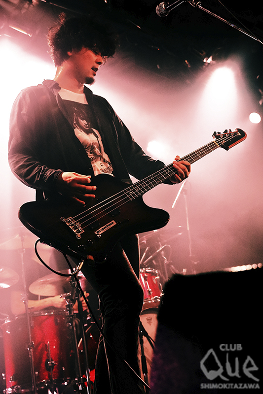 毎年恒例の2バン企画“夏ノ陣”。男女3ピースバンド対決となったこの日(東京で拳ほどの雹が降った日!)、先攻はCLUB Que最多出場の3本指に入るバンドながら、今年初出演のヌードルス。一曲目は「Blood Waltz」。ボーカルのyokoが甘い歌声でクールにギターを鳴らす前半から一転、歪んだギターがギュイーンと加速し、追随するタイトで骨太なリズムが圧倒すると場内の熱量がグッと上がった。全国ツアー直前とあって最新アルバム『Metaltic Nocturne』からの新曲中心のライブだが、どこを切ってもヌードルスらしいスタイリッシュなガールズ・オルタナ・ポップが爆発! 昨年25周年を迎えたそのサウンドにベテランの存在感を見つつ、懐かしくて切ないメロディーの「Metaltic Nocturne」、日本語歌詞のスイートなラブソング「madly madly」、疾走するロックナンバー「965」など、むしろ今、脂が乗っている彼女達にワクワクが止まらなかった。ラストは軽快なロックチューン「Ingrid said」で鮮やかに締めた。